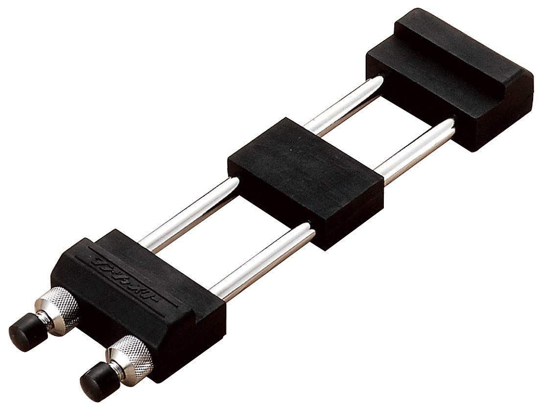 砥石がしっかりと固定されて、研ぎやすくなる。合成ゴム台座により滑りにくい。砥石が折れにくいセンター付。砥石適用サイズ:185~210mm