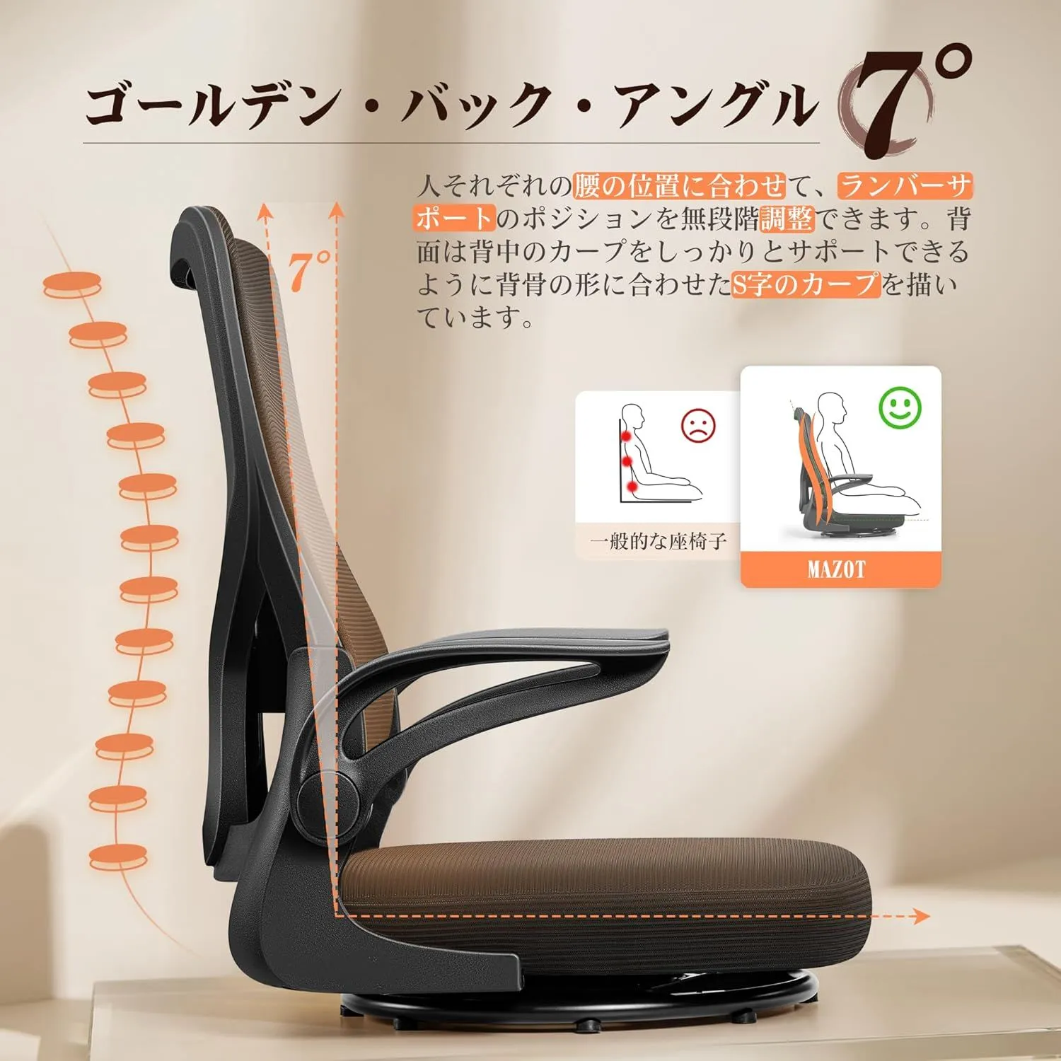 座椅子 回転座椅子 360度回転 疲れない デスクチェア 疲れない 通気性 椅子 メッシュ 和室オフィスチェア 人間工学 腰痛対策 10分簡単組み立て 通気性 黒