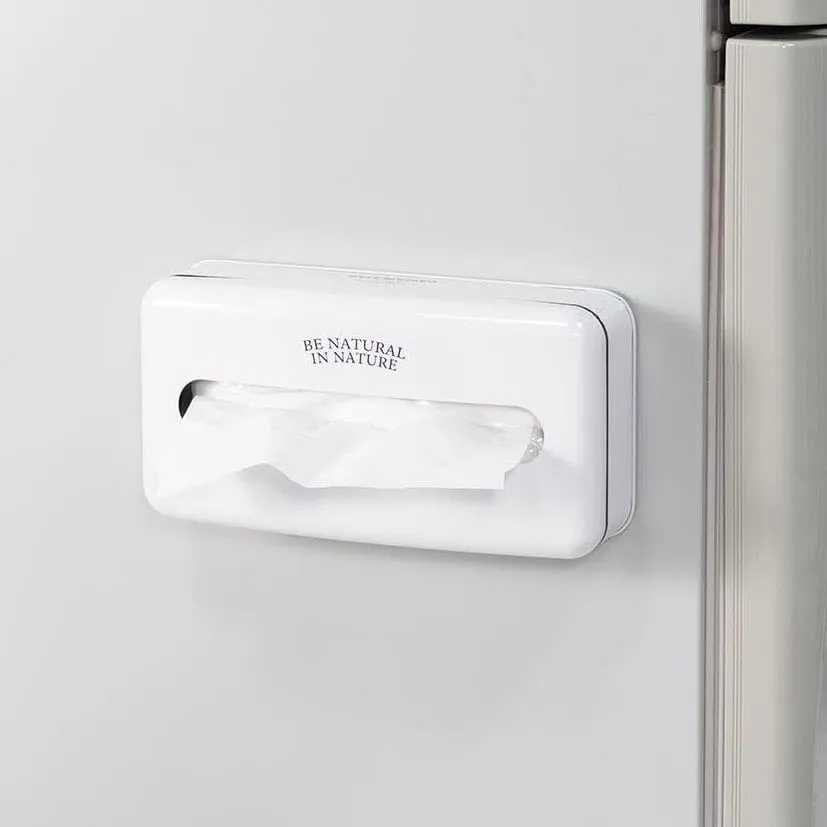 特徴:薄型ボックスティッシュや箱無しキッチンペーパーをスタイリッシュに収納。底部に付属のマグネットを貼れば、冷蔵庫や日除けタープのフレームなどに取り付け可能。リビングやキッチン、オフィスデスクなどに。