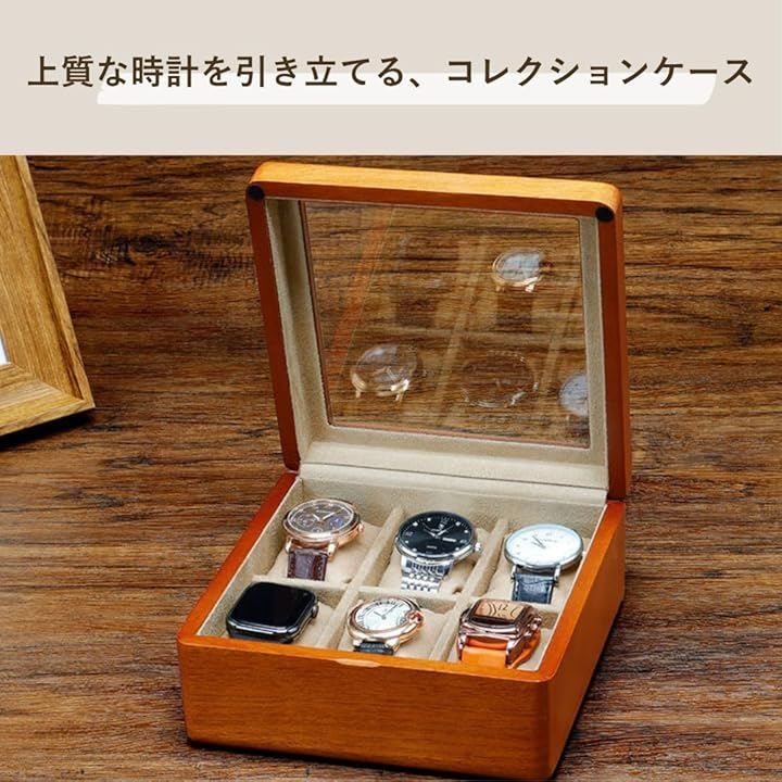 「時計を美しく飾る、天然木のディスプレイケース」4~6本の腕時計をまとめて収納・展示できる木製ケースです。