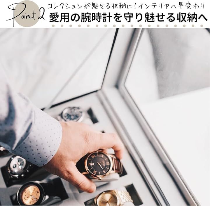 6つのクッション付き仕切りで腕時計を安全に収納します。