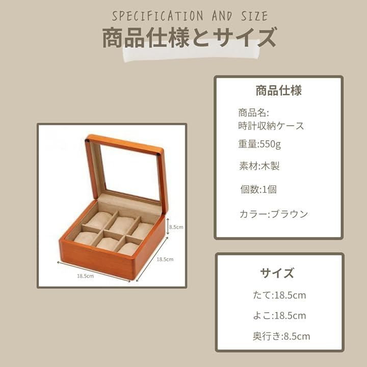 「商品仕様」商品名:時計収納ケース 重量:550g 素材:木製 個数:1個 サイズ たて18.5cm よこ18.5cm 奥行き8.5cm カラー:ブラウン