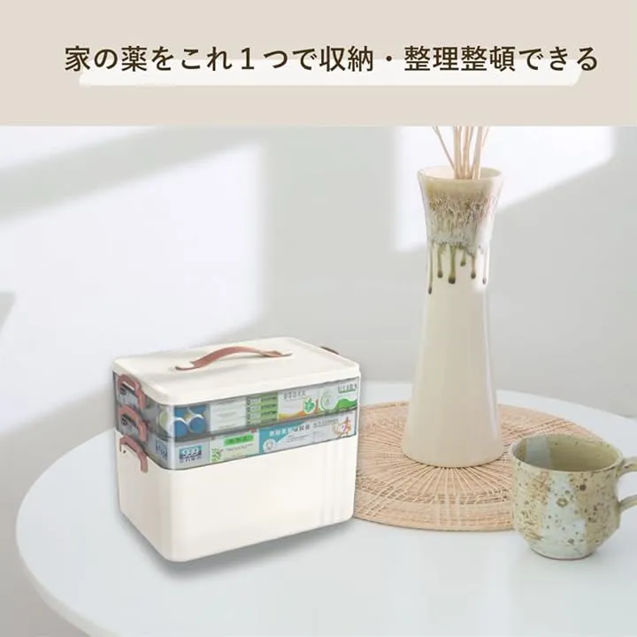 「用途毎に薬を分けれて、探す手間を省ける」応急処置、日々の服用、常備薬を分けて収納。
