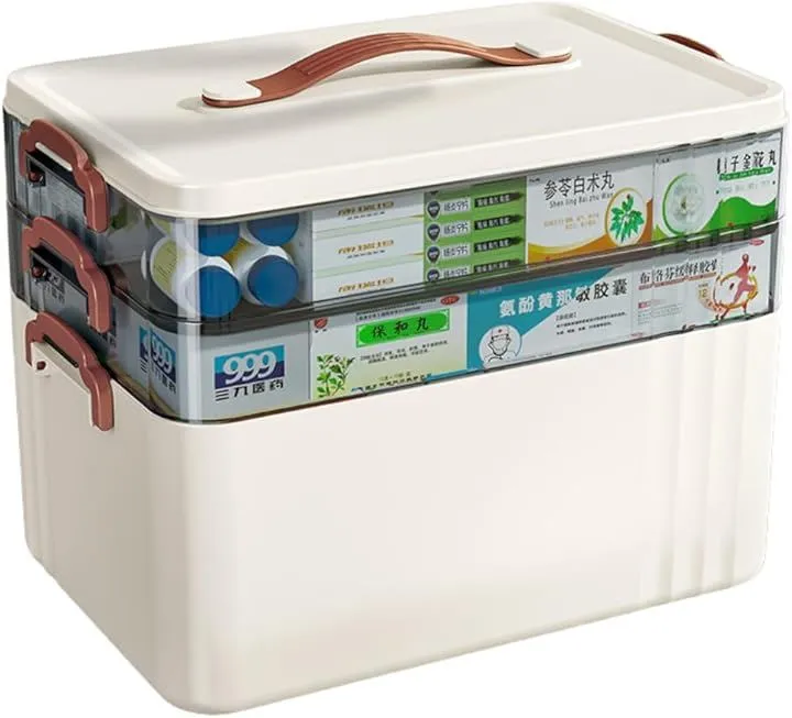 MOODY HOUSE 三層式 薬箱 大容量 家庭用 救急箱 透明引き出し 見やすい 取り外し可能で持ち運び便利 おしゃれ 1個 (ホワイト, 縦24.5cm 横31.5cm 奥行き22cm)