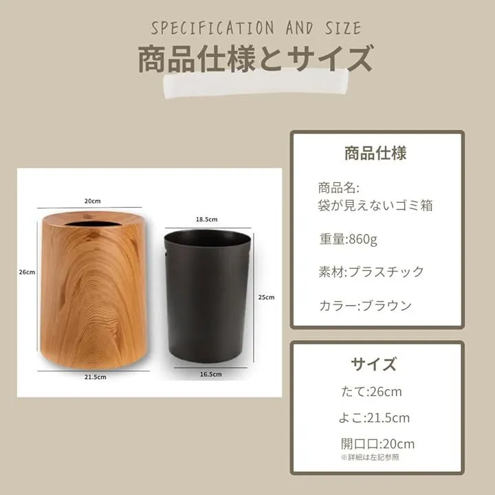 「商品内容」袋が見えないゴミ箱 1個 サイズ:横21.5cm 縦26cm 直径20cm ライトブラウン