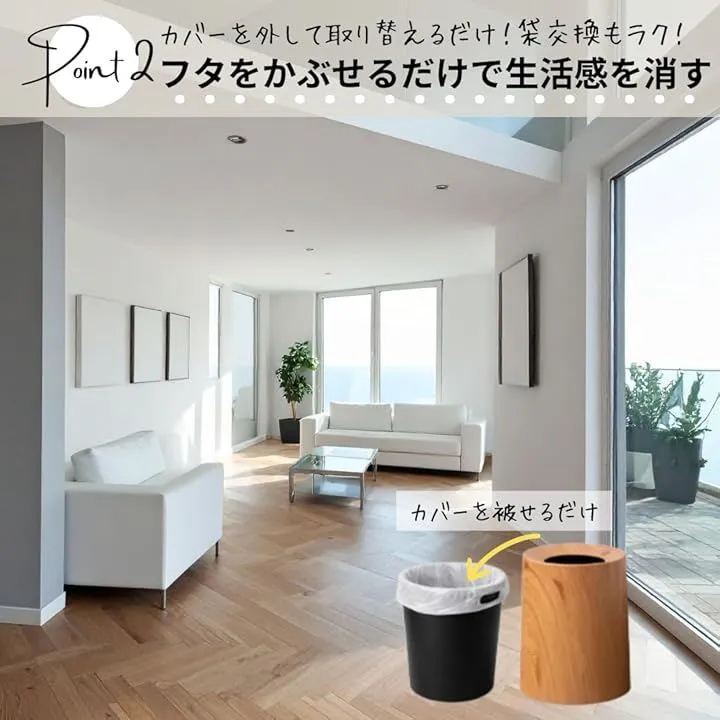「ゴミ袋が見えない2重構造」ゴミ箱カバーとインナーの2層構造で、外からゴミ袋が見えないゴミ箱。