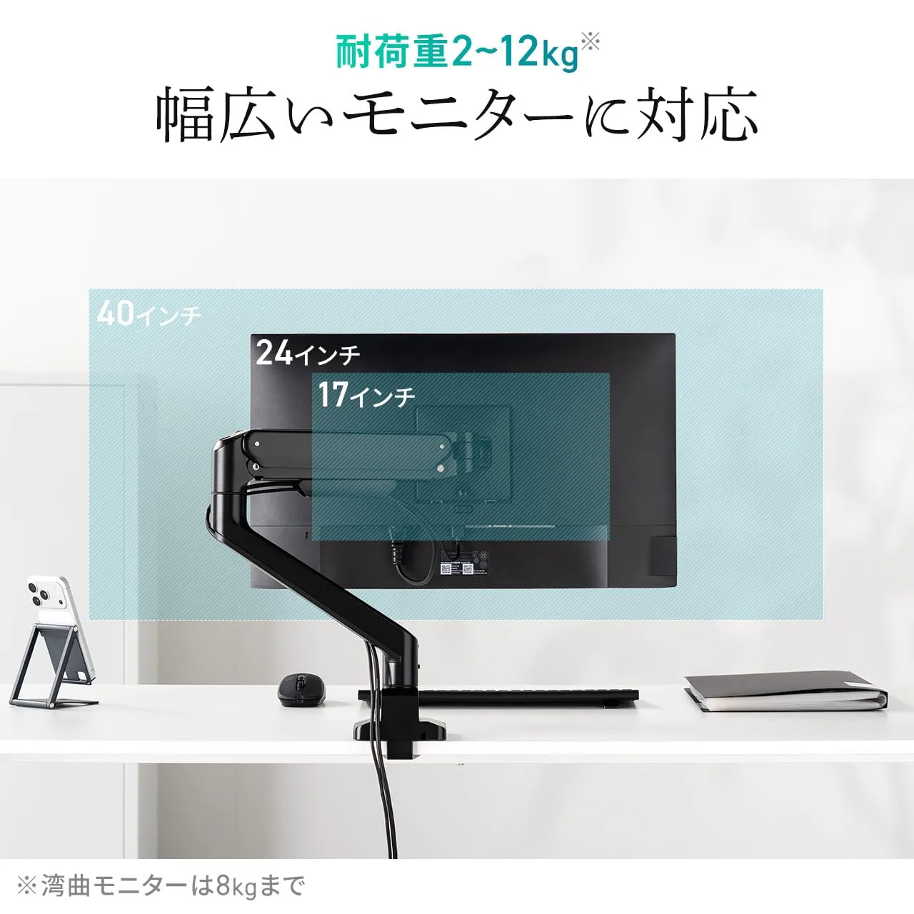 でも快適に使用できます。最大耐荷重は2~12kgで、幅広いサイズ・重量の ディスプレイ に対応します。液晶ディスプレイ の向きを 上下