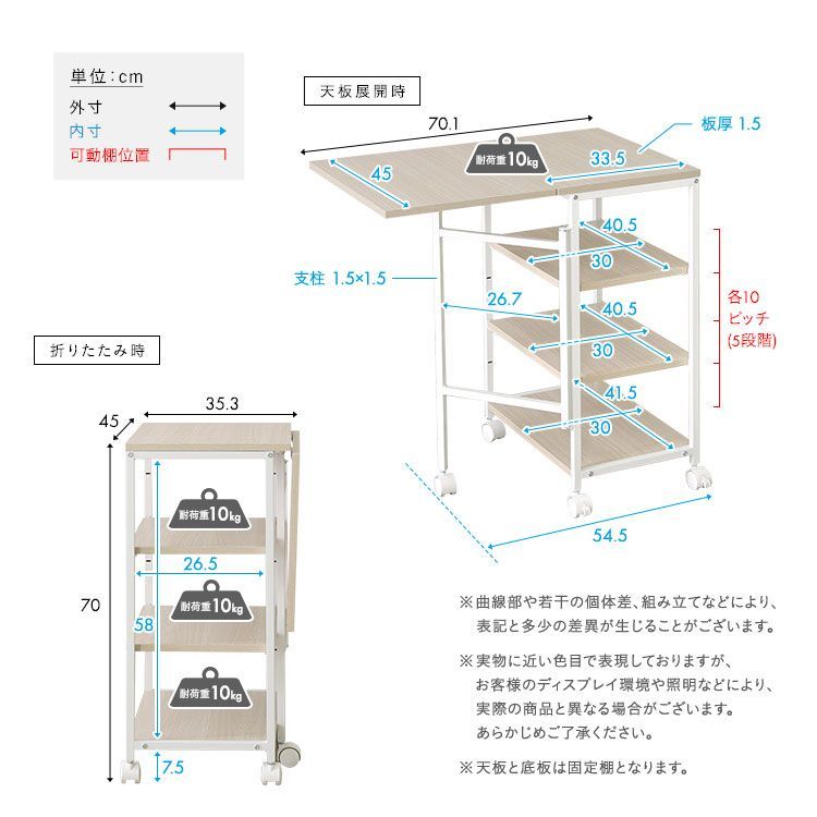 【耐荷重】 天板:(約)10kg 各棚:(約)10kg