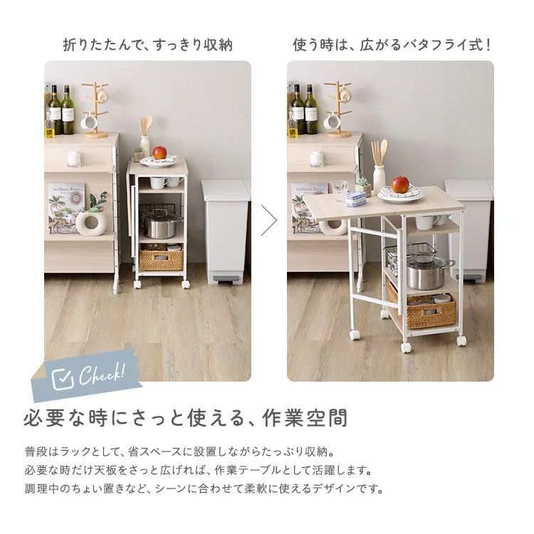 バタフライワゴン さわやかな 調節可能棚付き 収納 省スペース 作業スペース 作業台