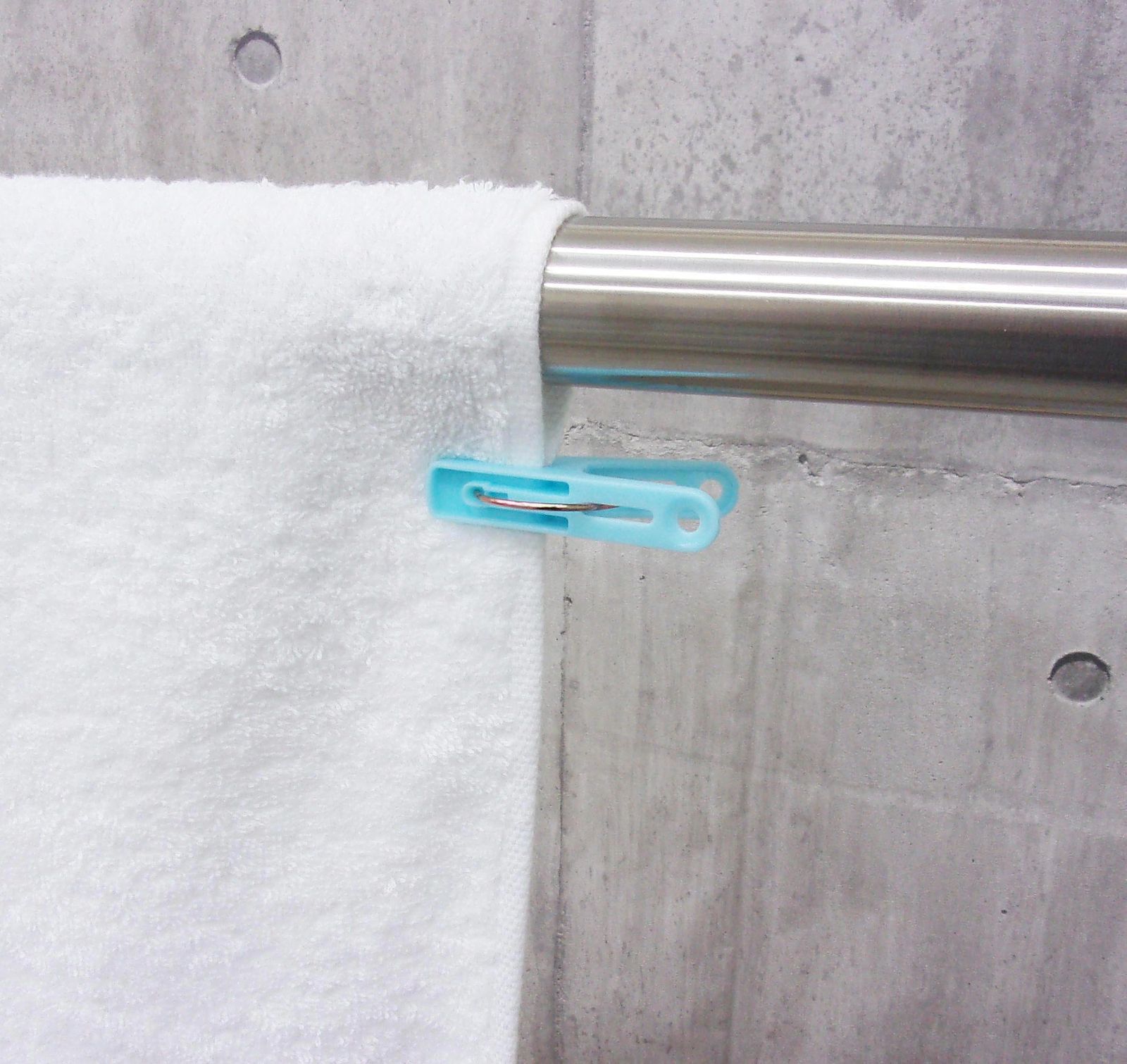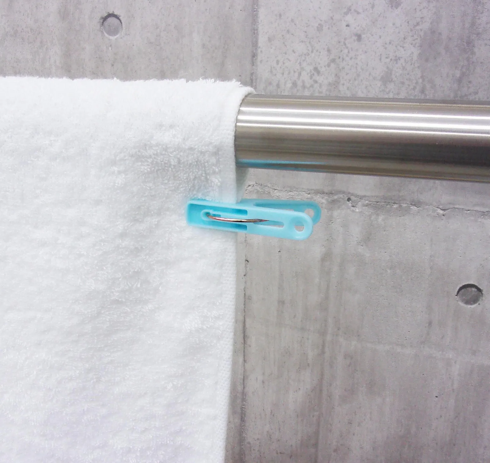■竿に掛けたバスタオルなどを止めるのにも便利。