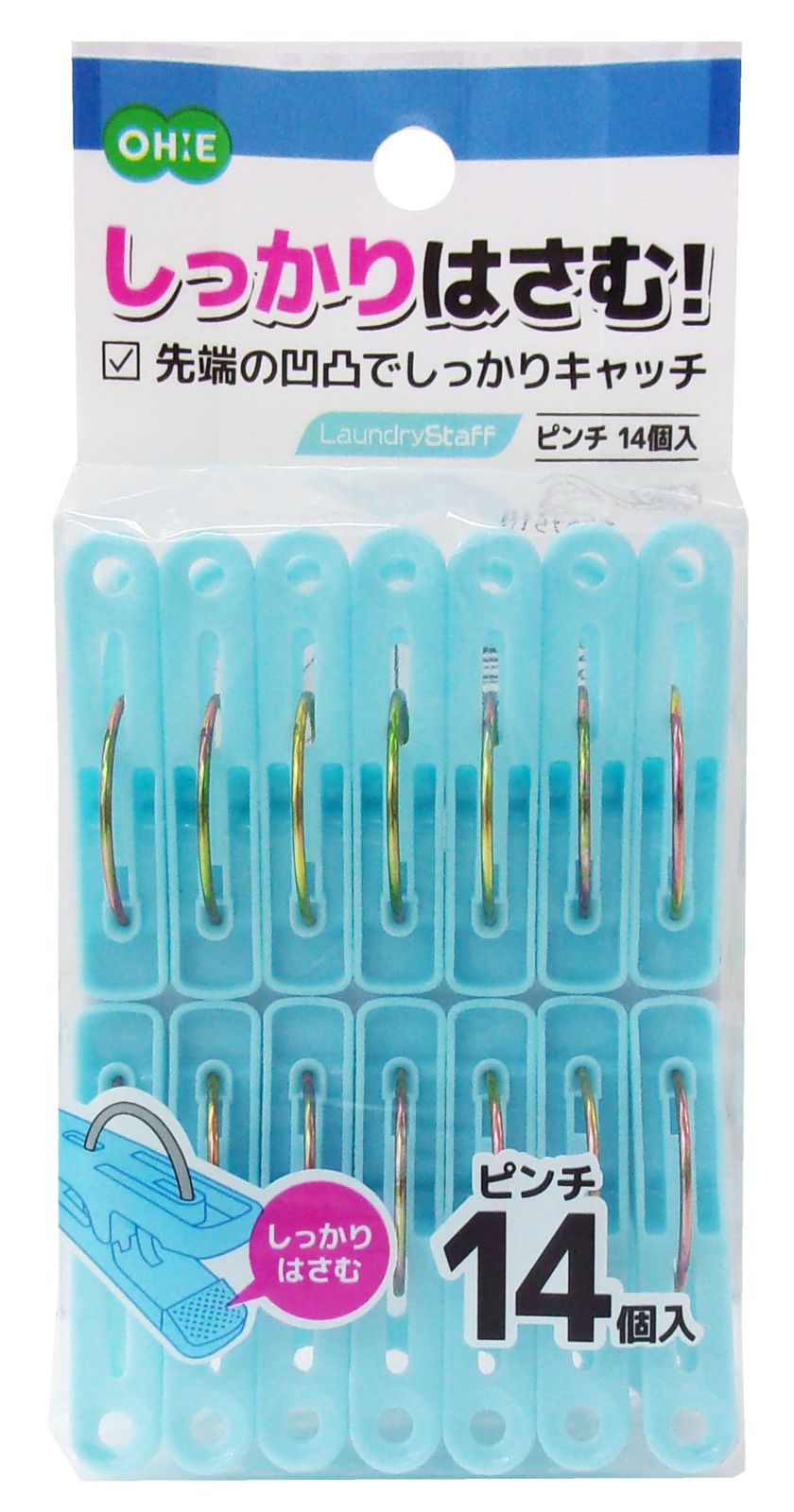 新品 オーエ 洗濯ばさみ 縦5.5cm×横3.2cm×高さ1cm ブルー Laundry Staff しっかりはさむ 先端凸凹でしっかりキャッチ 14個入