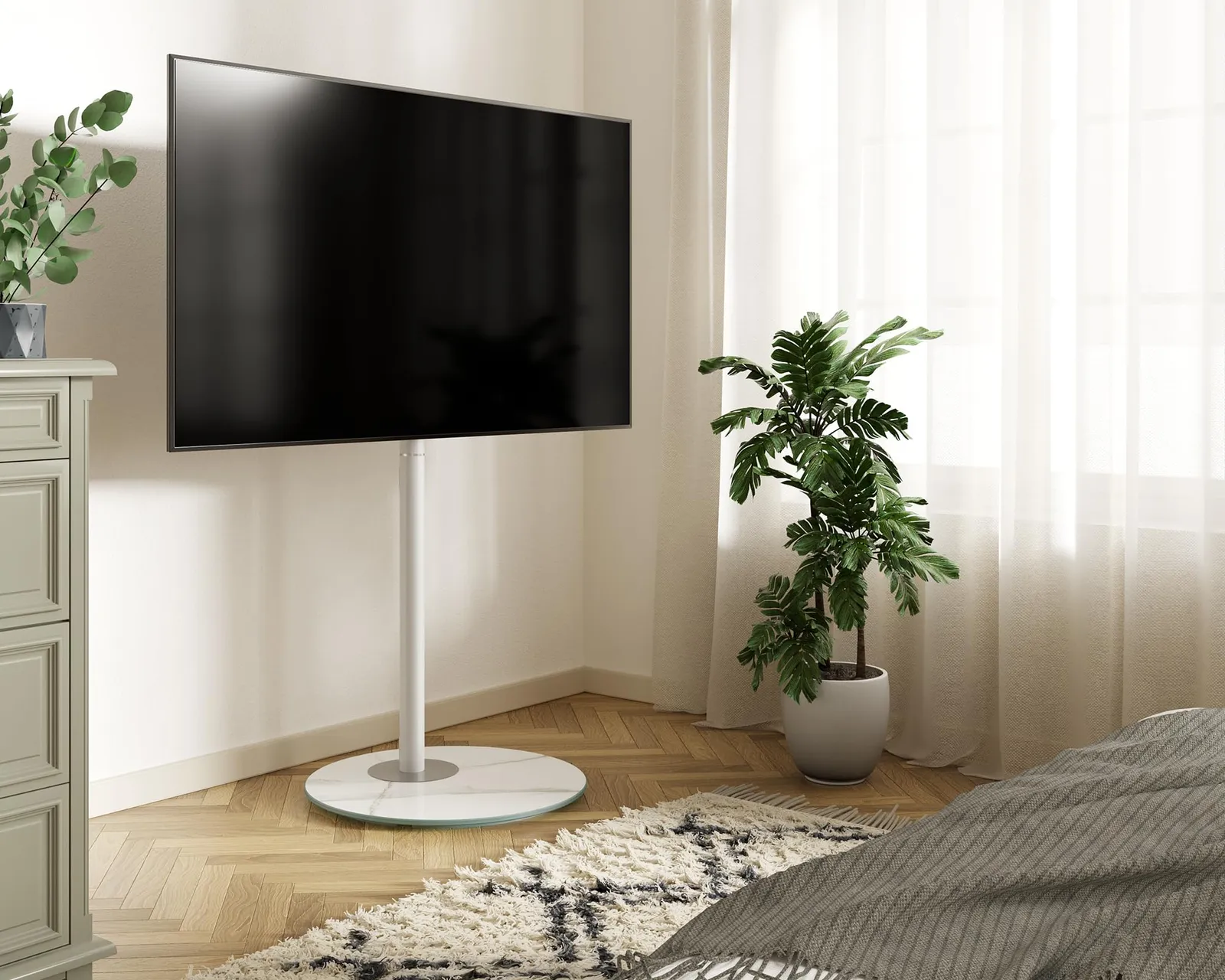 【マスターシリーズ】このテレビスタンドは北欧のミニマリストデザインコンセプトを採用しています。滑らかなラインとエレガントな色で、さまざまな家の装飾スタイルに簡単に溶け込みます。円形の台座には優雅な大理石のテクスチャがあり、優れた工芸が刻まれています。テレビスタンドのユニークな外観デザインは、実用的なツールであるだけでなく、家の美学の一部でもあります。