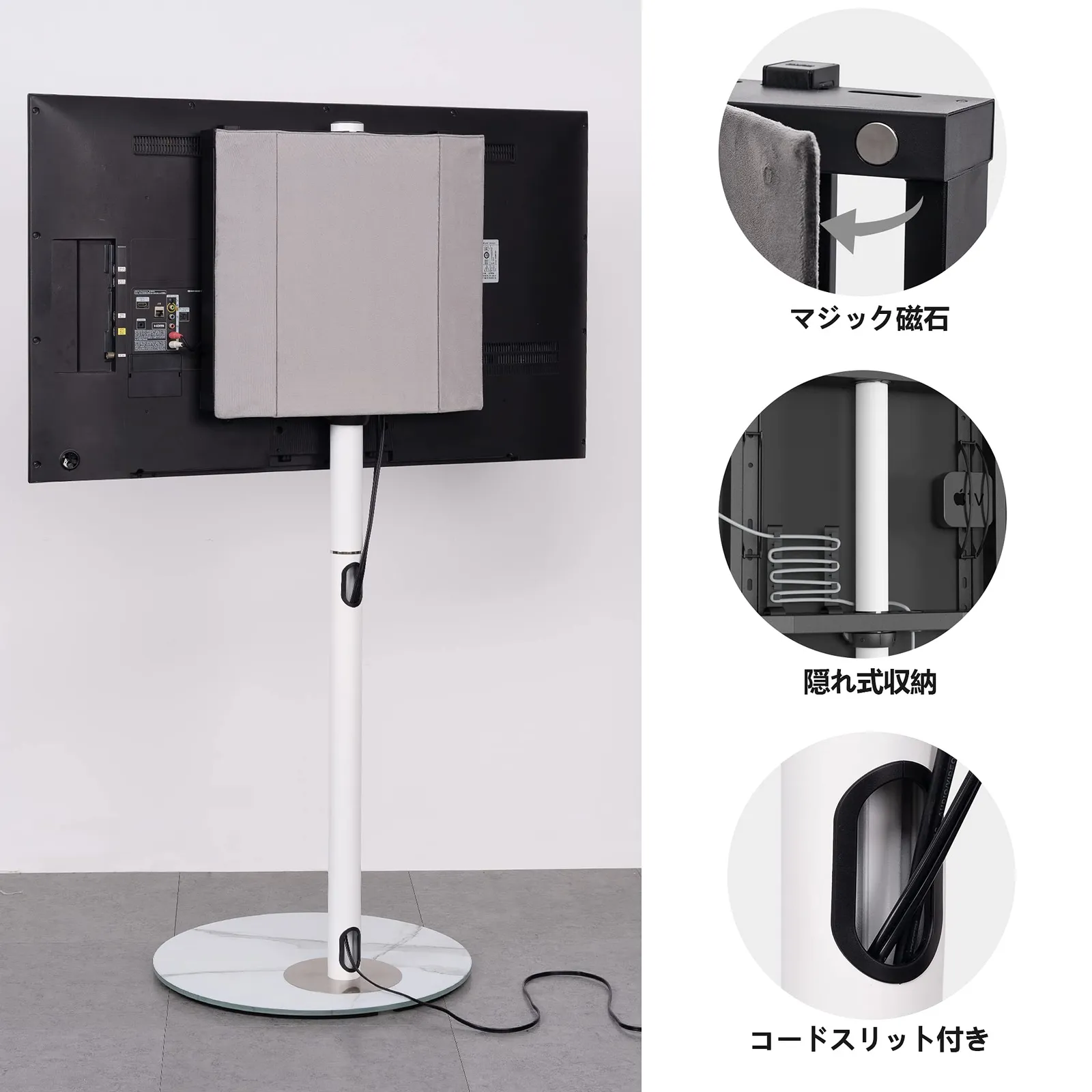【隠れ式収納】支柱内の賢いデザインにより、配線を隠すことができ、リビングルームをすっきりと美しく保ちます。ワイヤーをブラケットコラム内に通すだけでワイヤーを簡単に隠すことができ、ご自宅の環境をよりエレガントにします。