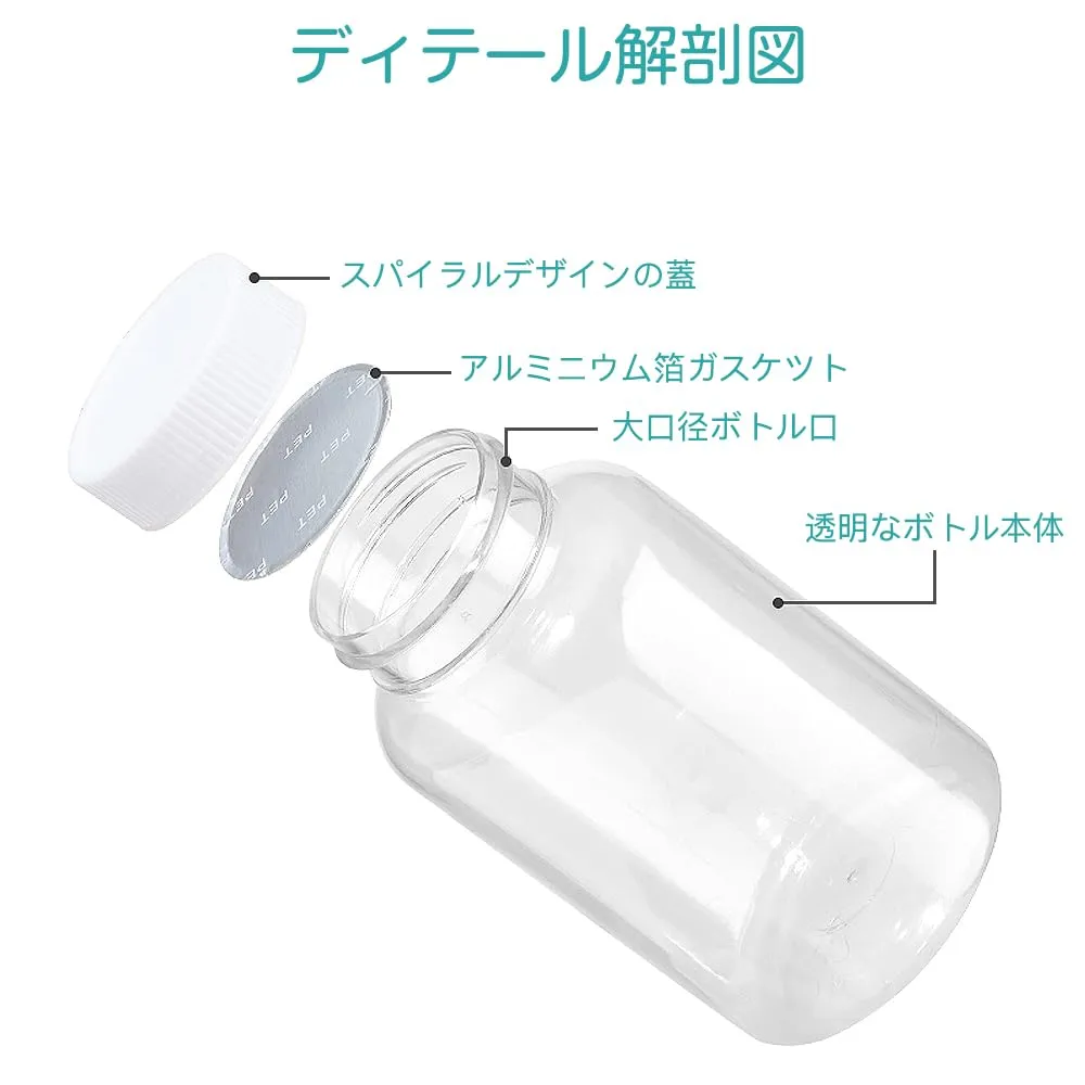 【優れた密閉性能】固体や粉末だけでなく液体も保存可能で、アルミ製パッキン付きのキャップが密閉性を高め、漏れる心配がない。