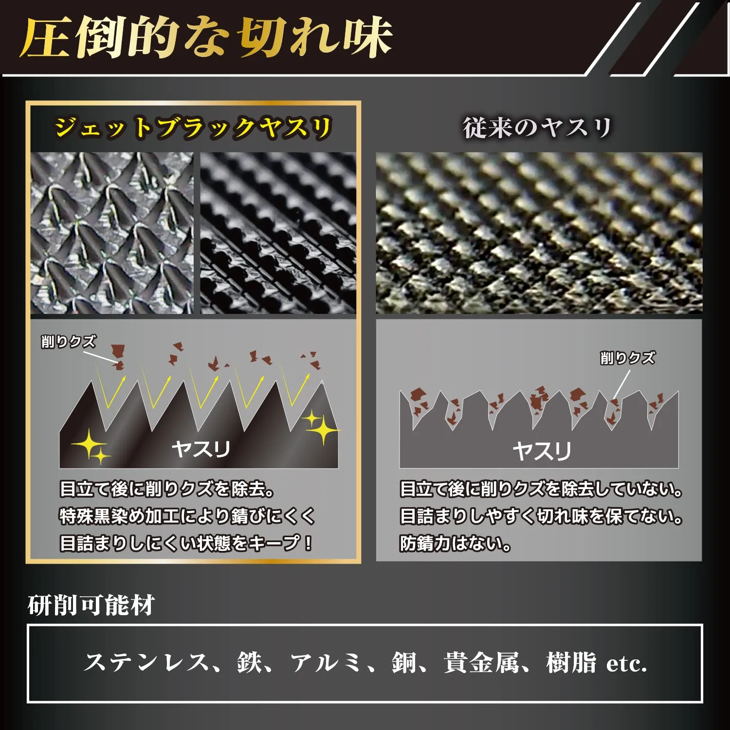 ・電解研磨でヤスリ目を磨き切削性を向上、抜群の切れ味です。