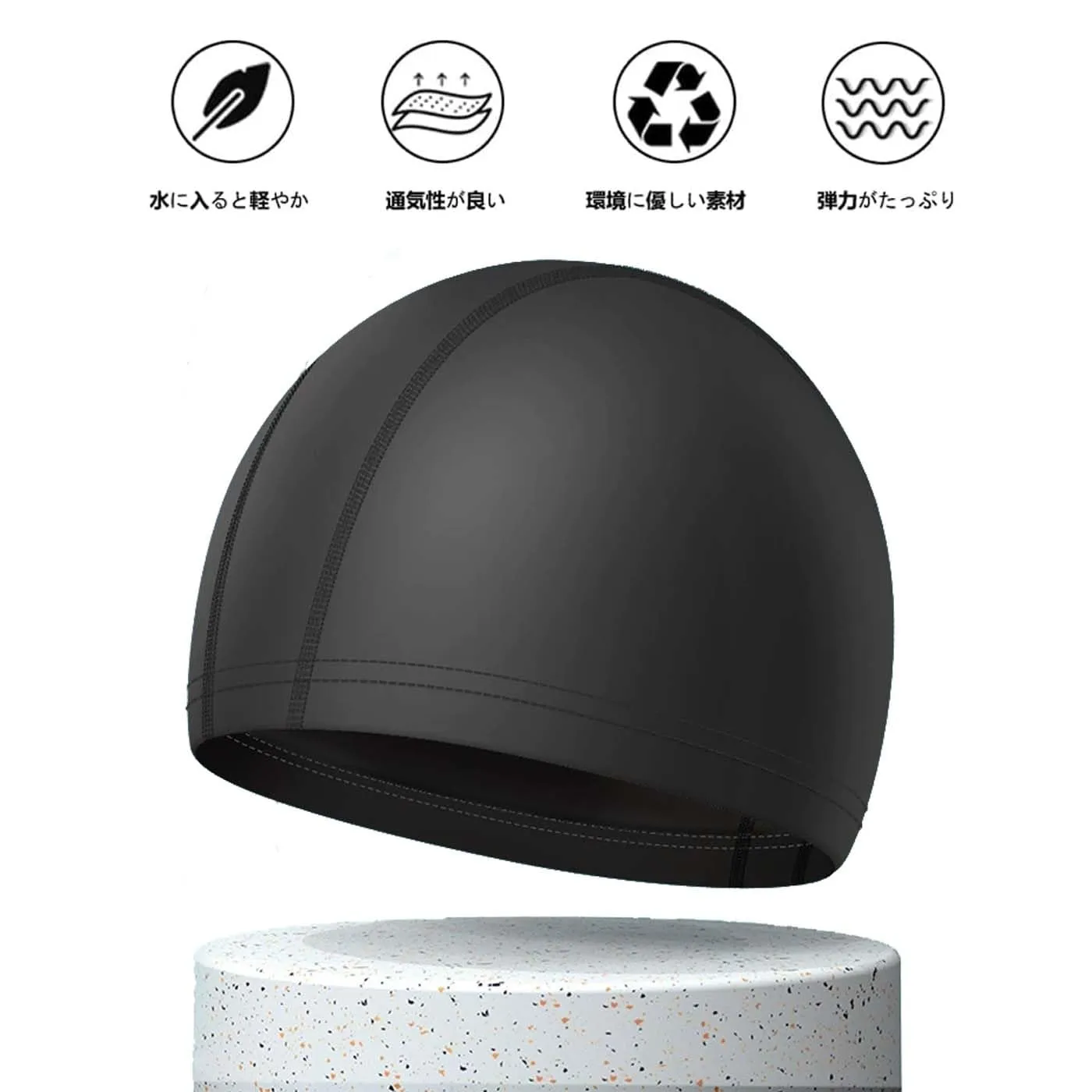 新品 HUIKKJP スイムキャップ 大人 水泳帽 男女兼用 スイミングキャップ 伸縮性良い 水泳 海 スイム スポーツジム おしゃれ水泳帽子 (ブラック)