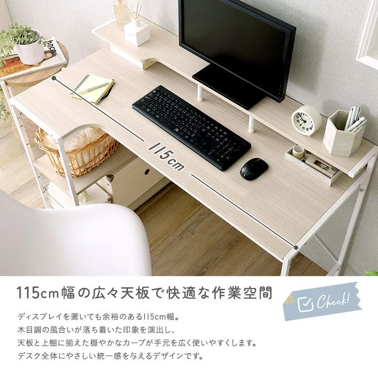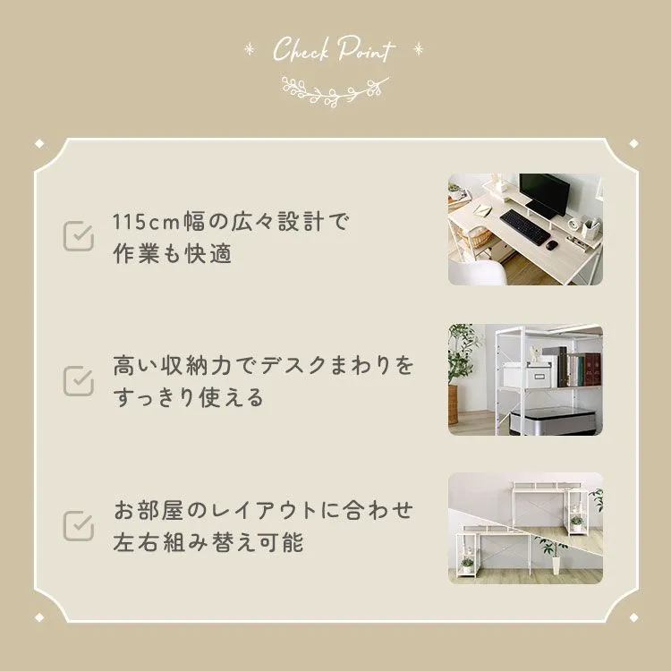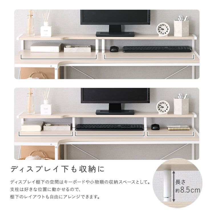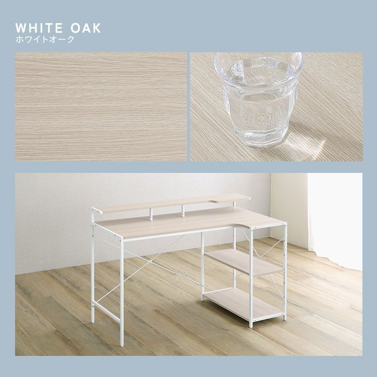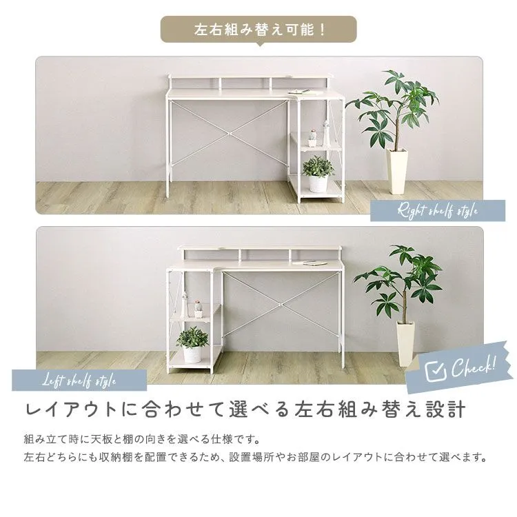 L字デスク さわやか 棚付き デザインデスク 広々 可動棚 リバーシブル天板 アジャスター付き
