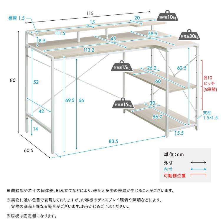 【耐荷重】 可動棚:(約)15kg 天板:(約)30kg ディスプレイ棚:(約)10kg
