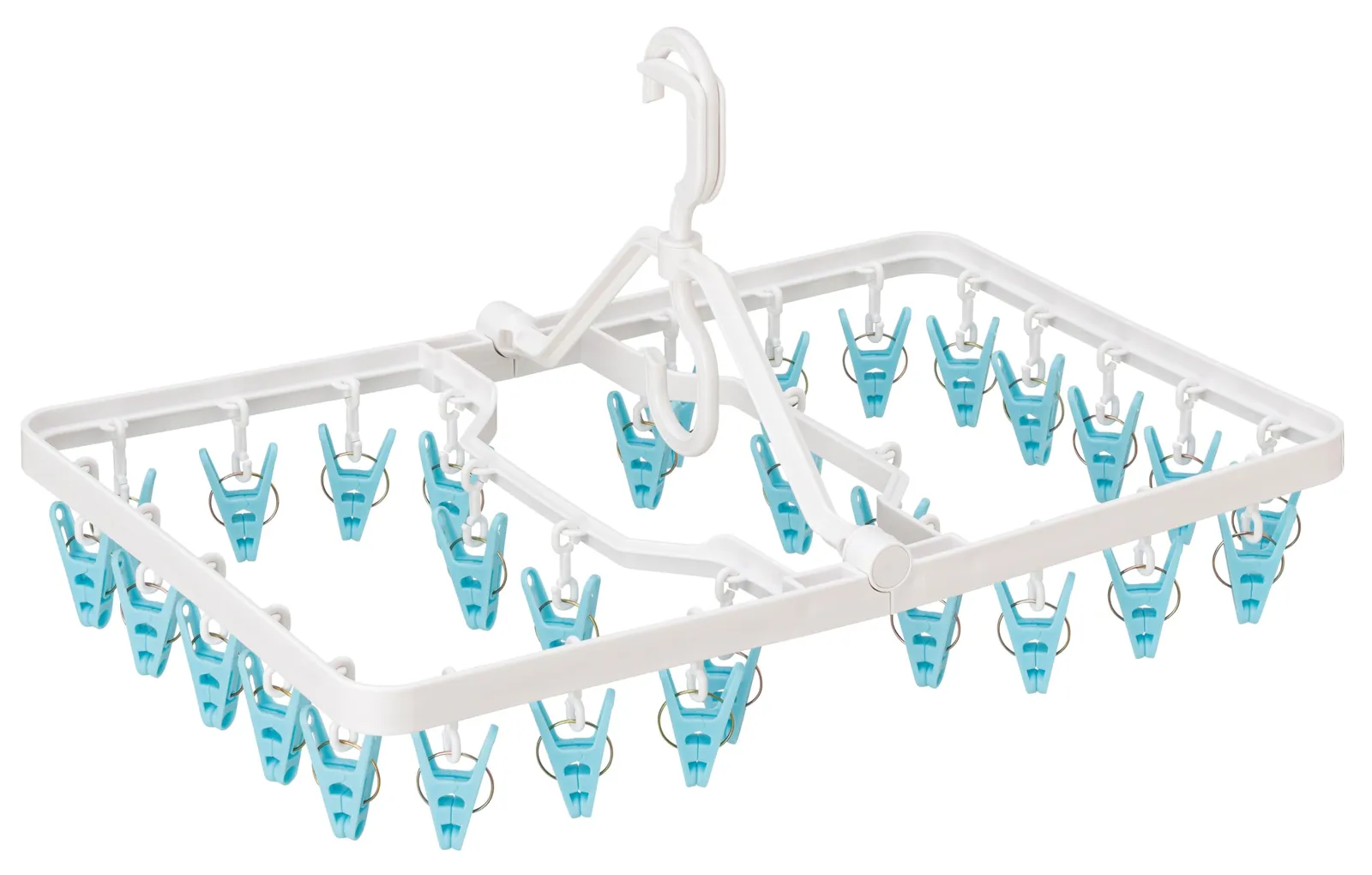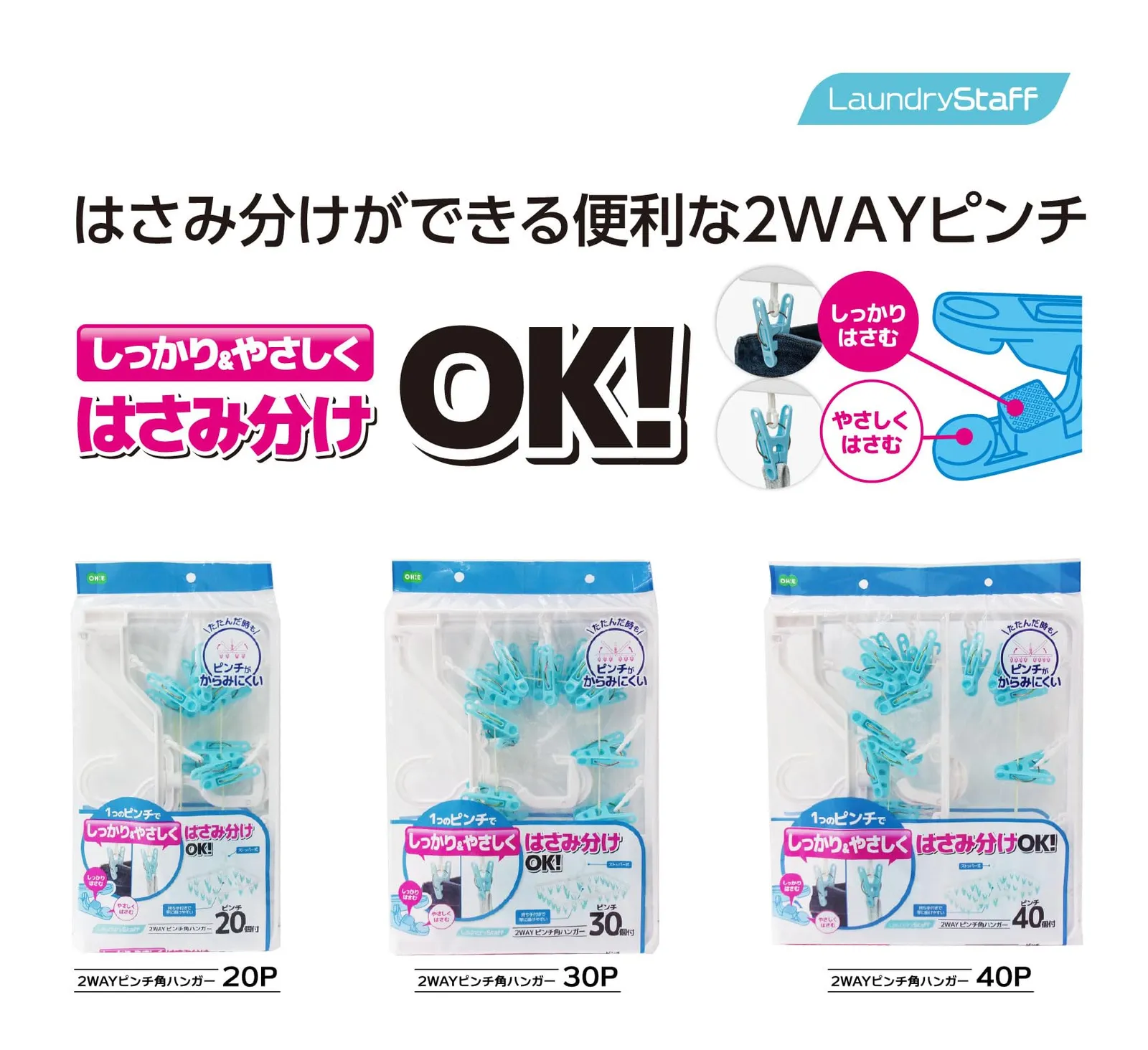 新品 オーエ 洗濯 物干し 2WAY ピンチ 角ハンガー 縦51.5cm×横33.5cm×高さ28cm ホワイト Laundry Staff ストッパー式 1つのピンチでしっかり&やさしくはさみ分け ピンチ 30個付