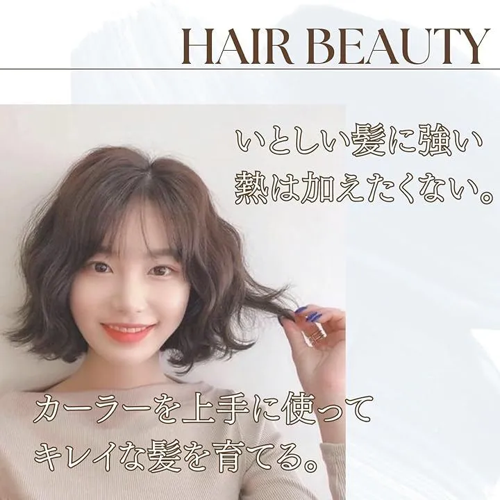 「特大カーラー、ミドルカーラーでくるん。 根元からふんわり巻いて、ゆるふわ前髪の完成」