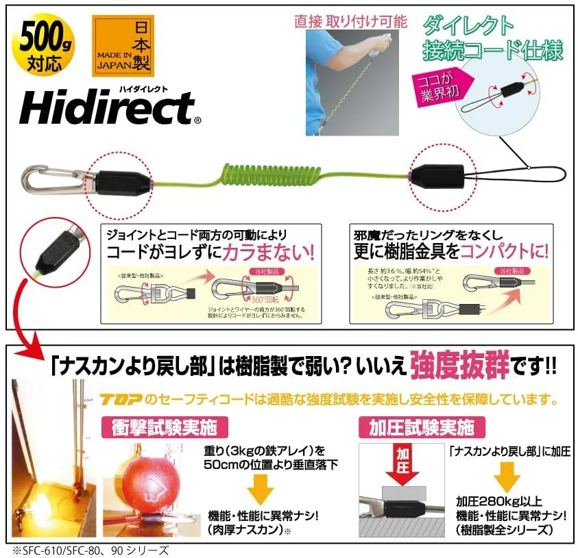 新品 トップ (TOP) コンパクトセーフティコード ブラック 日本製 接続紐直付けタイプ 安全紐 SFC-206BK