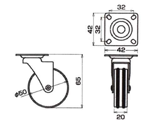 新品 26293 木製キャスター50mm ナチュラル プレート・ストップ無【ハイロジック】