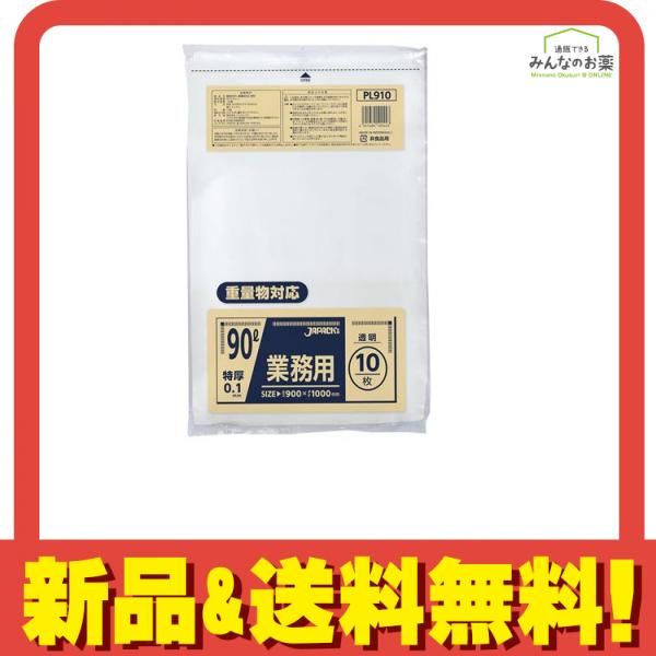 ジャパックス 業務用 ポリ袋 重量物対応 特厚タイプ 厚さ0.1mm 透明 90L 10枚入 (PL910)