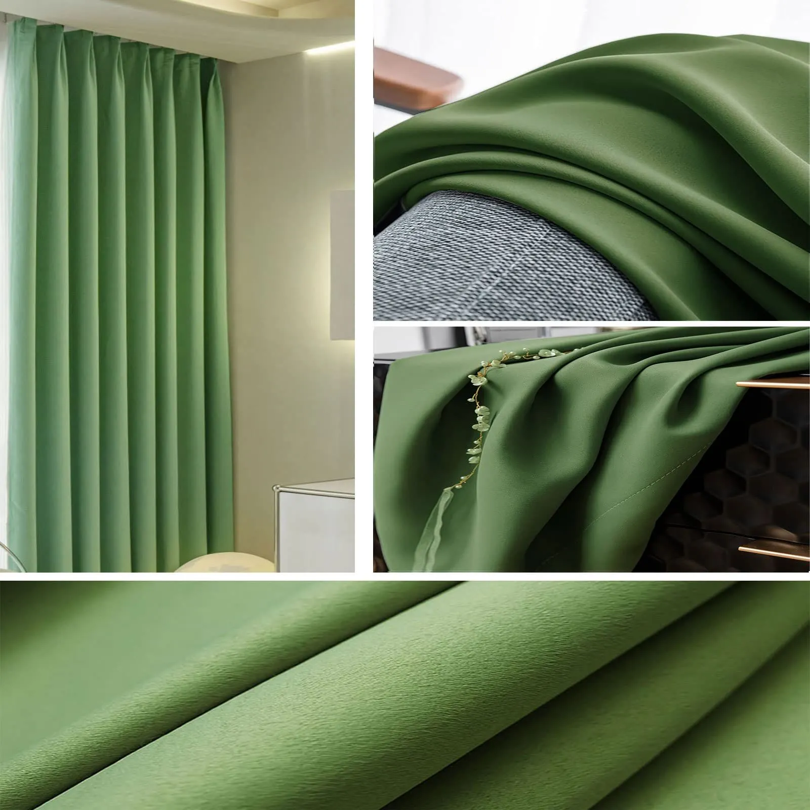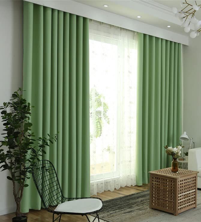 【特価商品】遮光カーテン1級遮光 遮熱 防音 厚手カーテン 寝室 リビング用 断熱 暗幕 出窓用 無地 かーてん (グリーン 150×200cm*2枚)