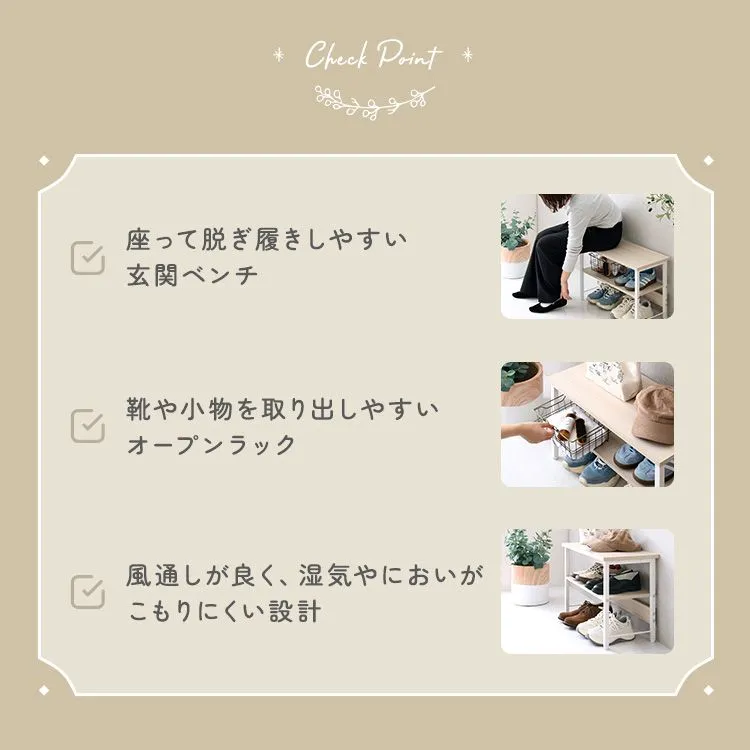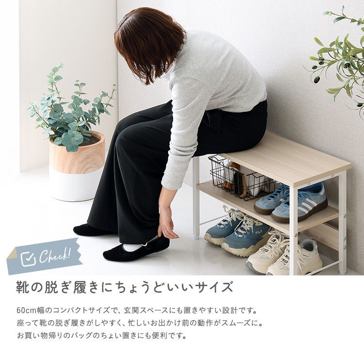 玄関ベンチ さわやか 収納棚付き 60cm幅 靴 脱ぎ履き 立ち上がりやすい 座りやすい 玄関