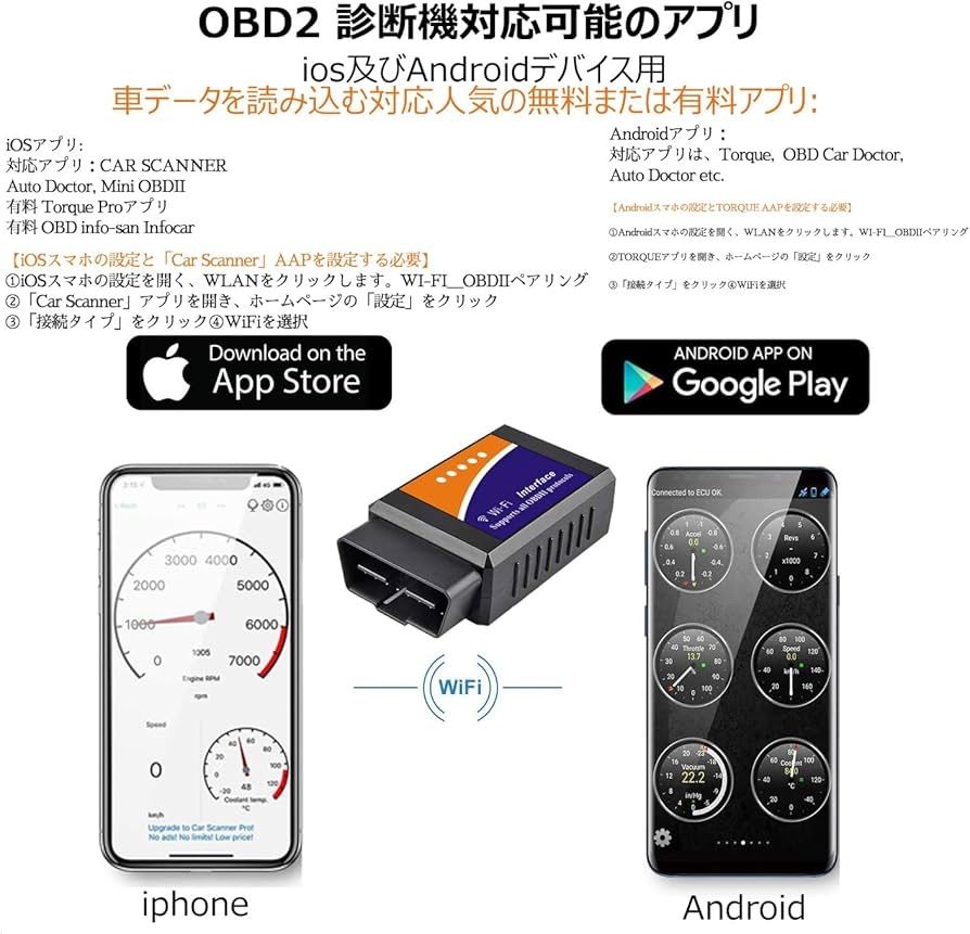 Runbod OBD2 診断機 OBD2 スキャンツール V1.5 Wi-Fi 自動車 故障診断機 iPhon-e-IOS/Androidに適用 OBD2定義範囲内の車種に対応 設置簡単車のECU情報をアプリでチェック *Bluetoothには対応できません
