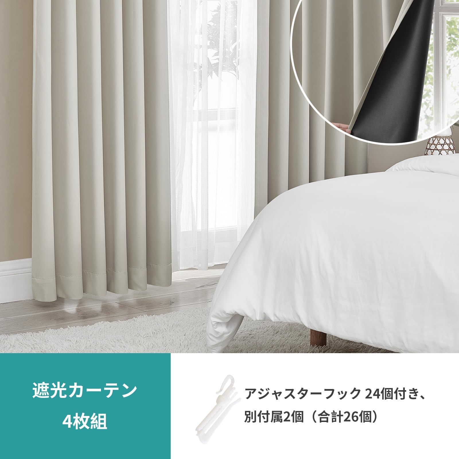 【新着商品】Hansleep カーテン 1級遮光 4枚セット 幅100cm丈220cm ベージュ 断熱 防寒 防音 省エネ 厚手 無地 おしゃれ 洗える リビング用 (カーテン2枚・レース2枚)