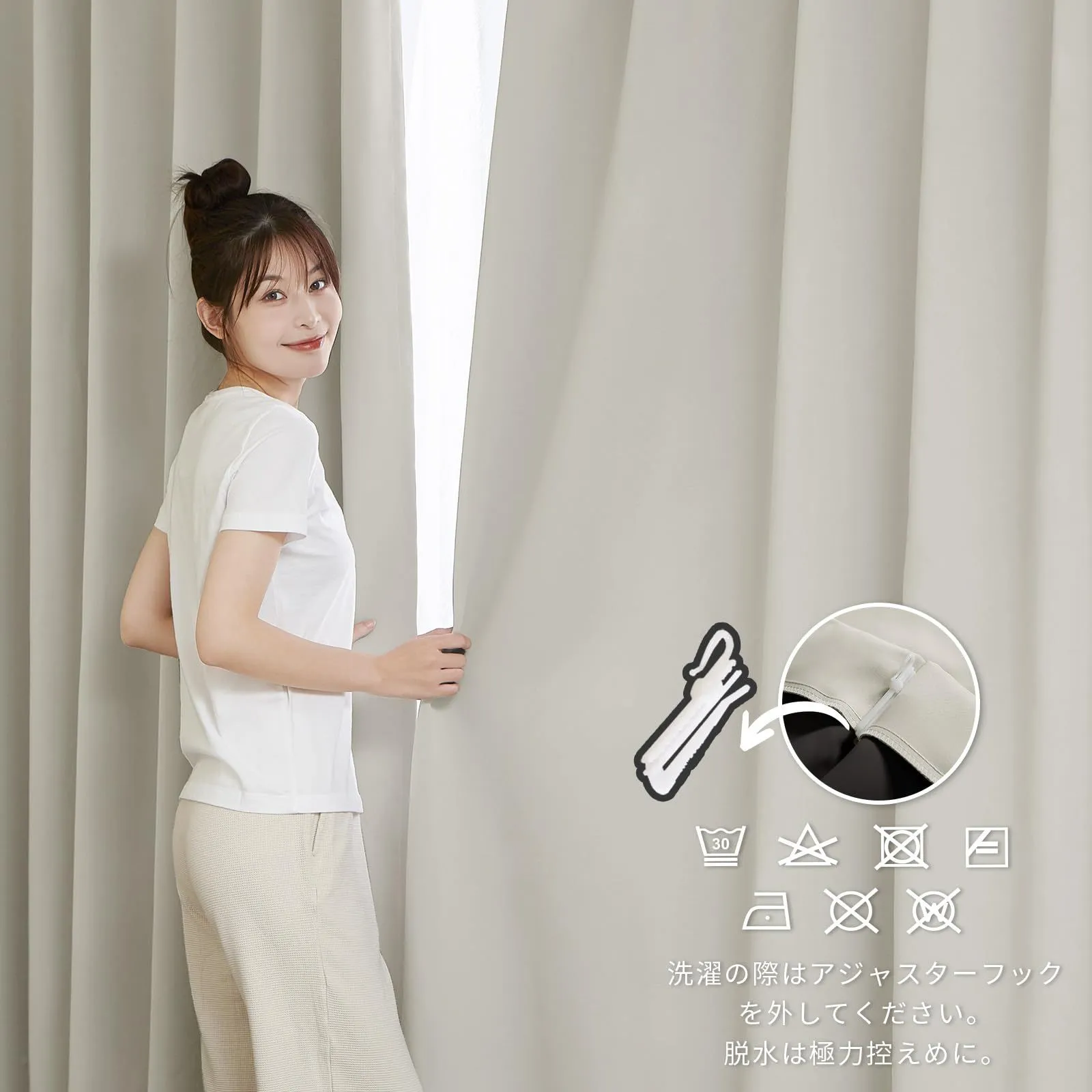 【一級遮光】このカーテンは遮光度が99.99%以上,外からの光をほとんど通さないため、昼間カーテンを閉めたお部屋のなかで相手の顔の表情が分からない程度にまでお部屋を暗くできます。同じ等級であっても、カーテンの明度や色彩によって遮光の度合いが変わります。薄い淡い色は光を通しやすく、濃い暗い色は光を通しにくいです。遮光性を重視される方は濃色をおすすめします。