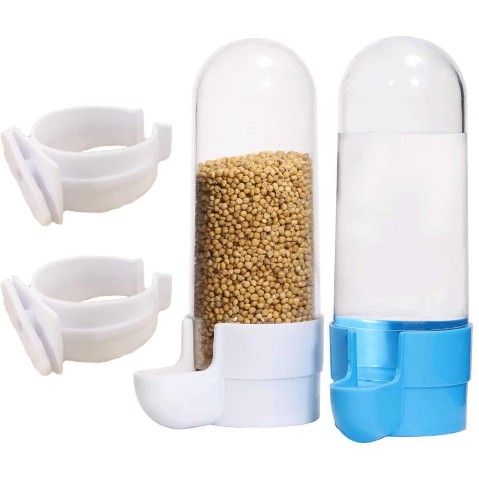 RYOHIN Lab.(良品ラボ) 自動餌入れ 鳥 水入れ 給餌器 給水器 ペット用 小動物 餌やり 水やり プラスチック 青 白 2個セット (本体+バックル)