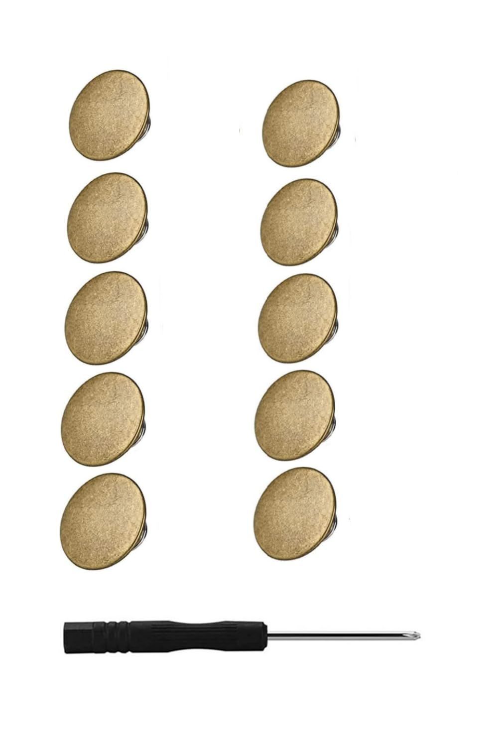 YFFSFDC ボタン ジーンズ デニム 交換 リメイク用 17mm 10個セット ジーパン直し ネジ式 簡単取付け DIY 手作り 手芸/家庭/裁縫用 専用ドライバー付き (銅色 #1)
