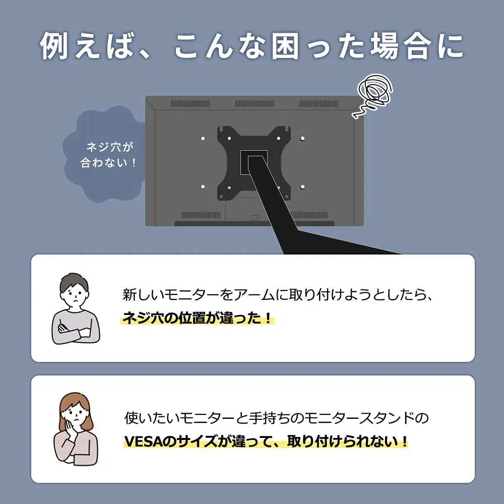 ●モニターアームやスタンドのVESA規格を変更できるVESA変換金具です。