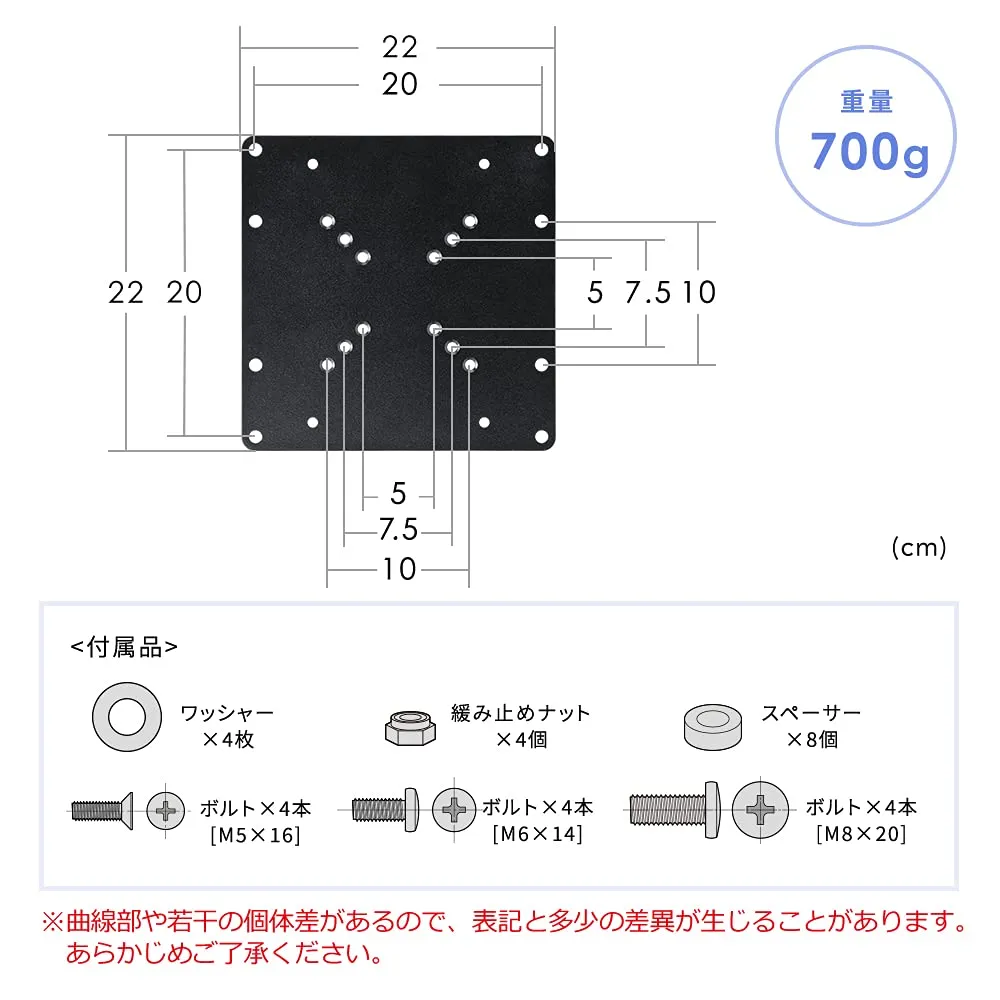 ■付属品:ボルト(M5・M6・M8)、ワッシャー、ナット、スペーサー