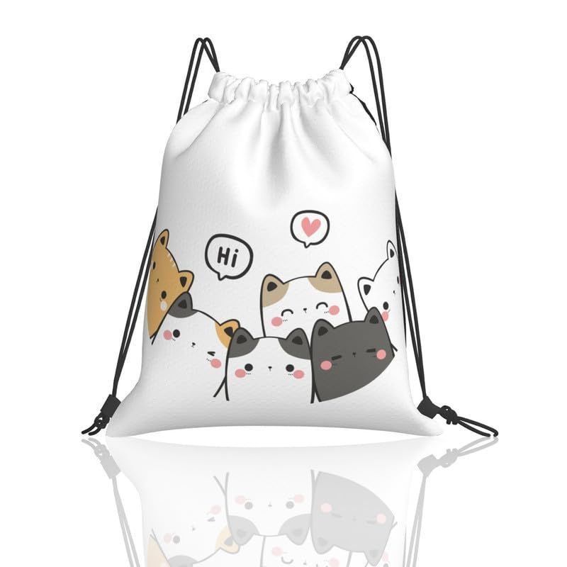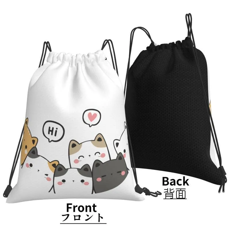 和柄 可愛い猫 ナップサック ジムサック リュックサック スポーツバッグ リュック プールバッグ バックパック 体操服入れ 大容量 収納便利 軽量 部活 ジム 遠足 キャンプ 水泳 アニメ グッズ 雑貨 女の子 男の子