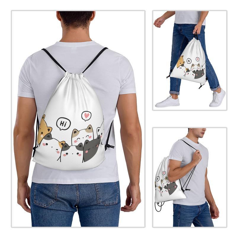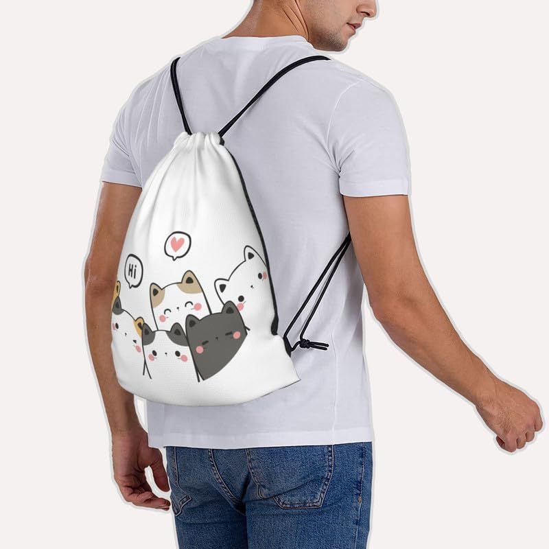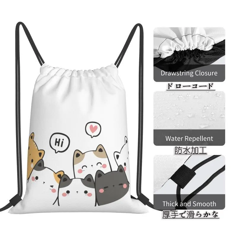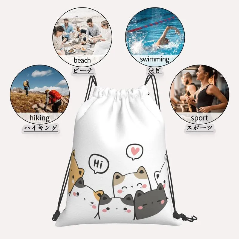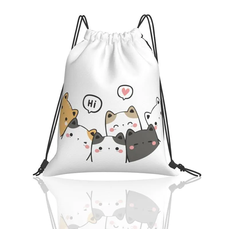 【売切注意!お早めに】 男の子 女の子 雑貨 グッズ アニメ 水泳 キャンプ 遠足 ジム 部活 軽量 収納便利 大容量 体操服入れ バックパック プールバッグ リュック スポーツバッグ リュックサック ジムサック ナップサック 可愛い猫 和柄