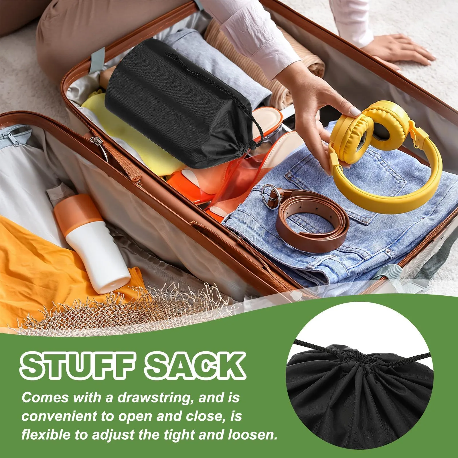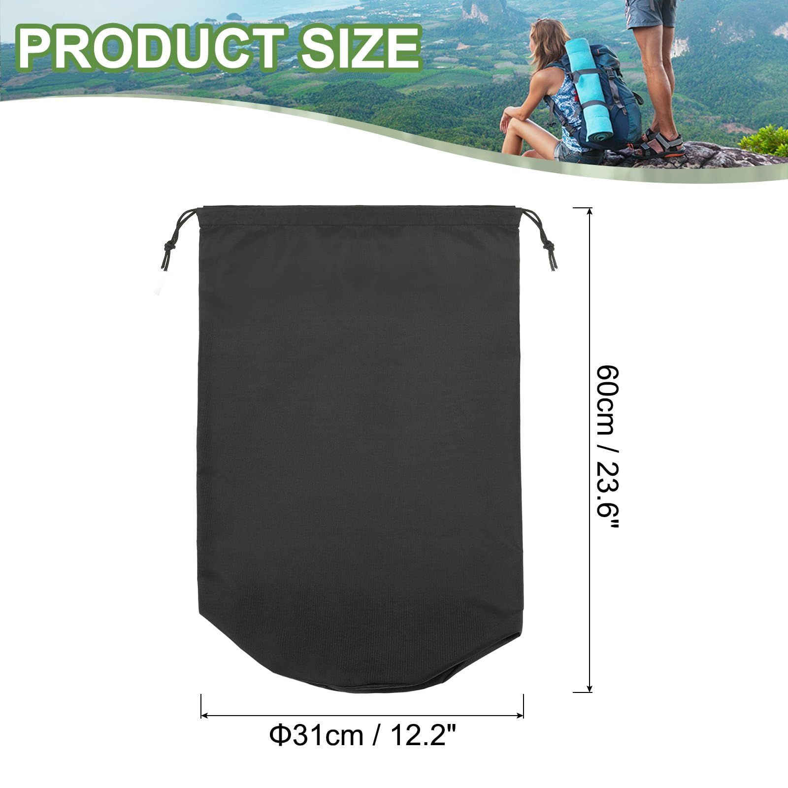 カラー:黒。全体のサイズ:31 x 60 cm (横 × 縦); 梱包内容:スタッフサック1個。