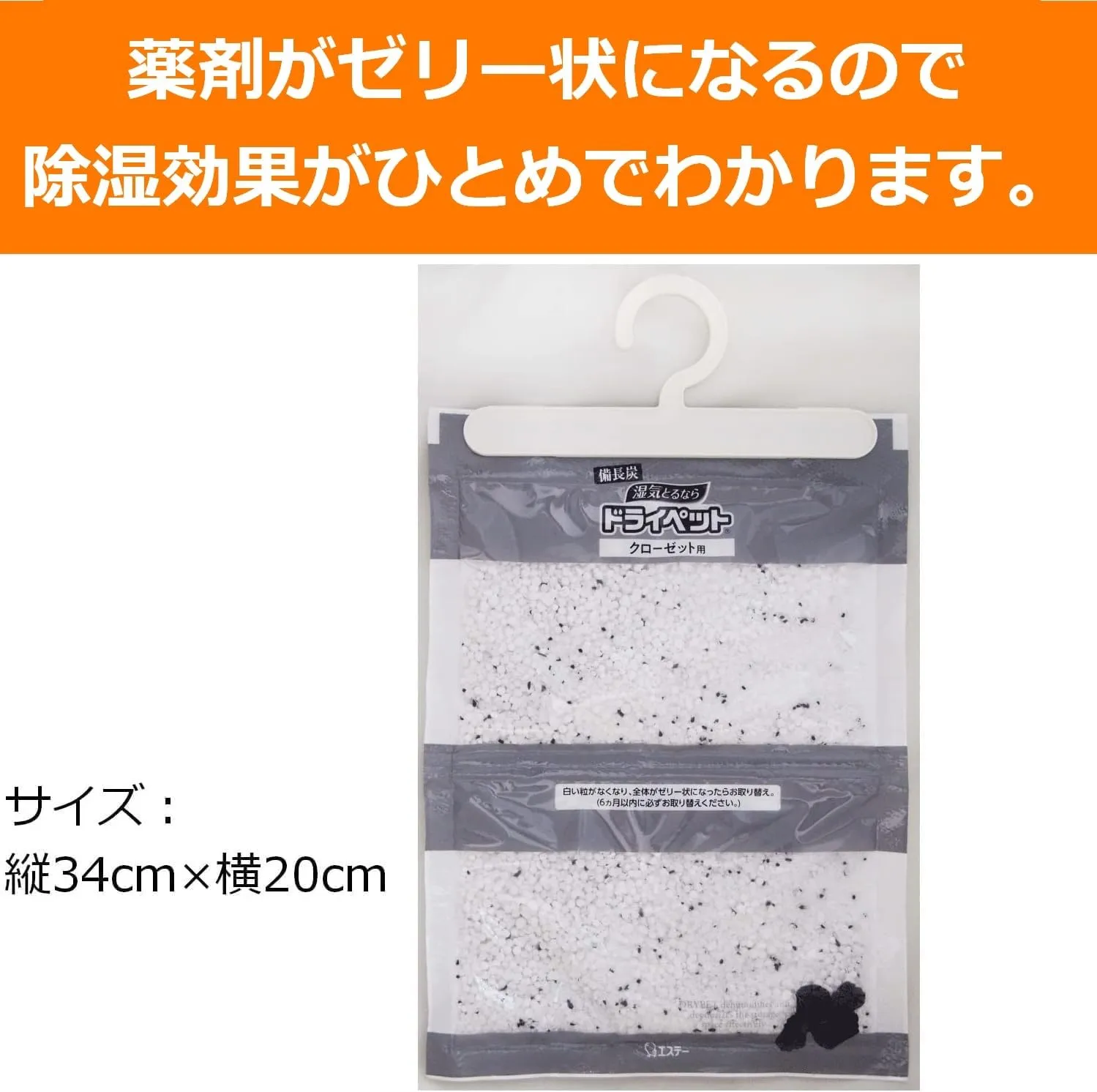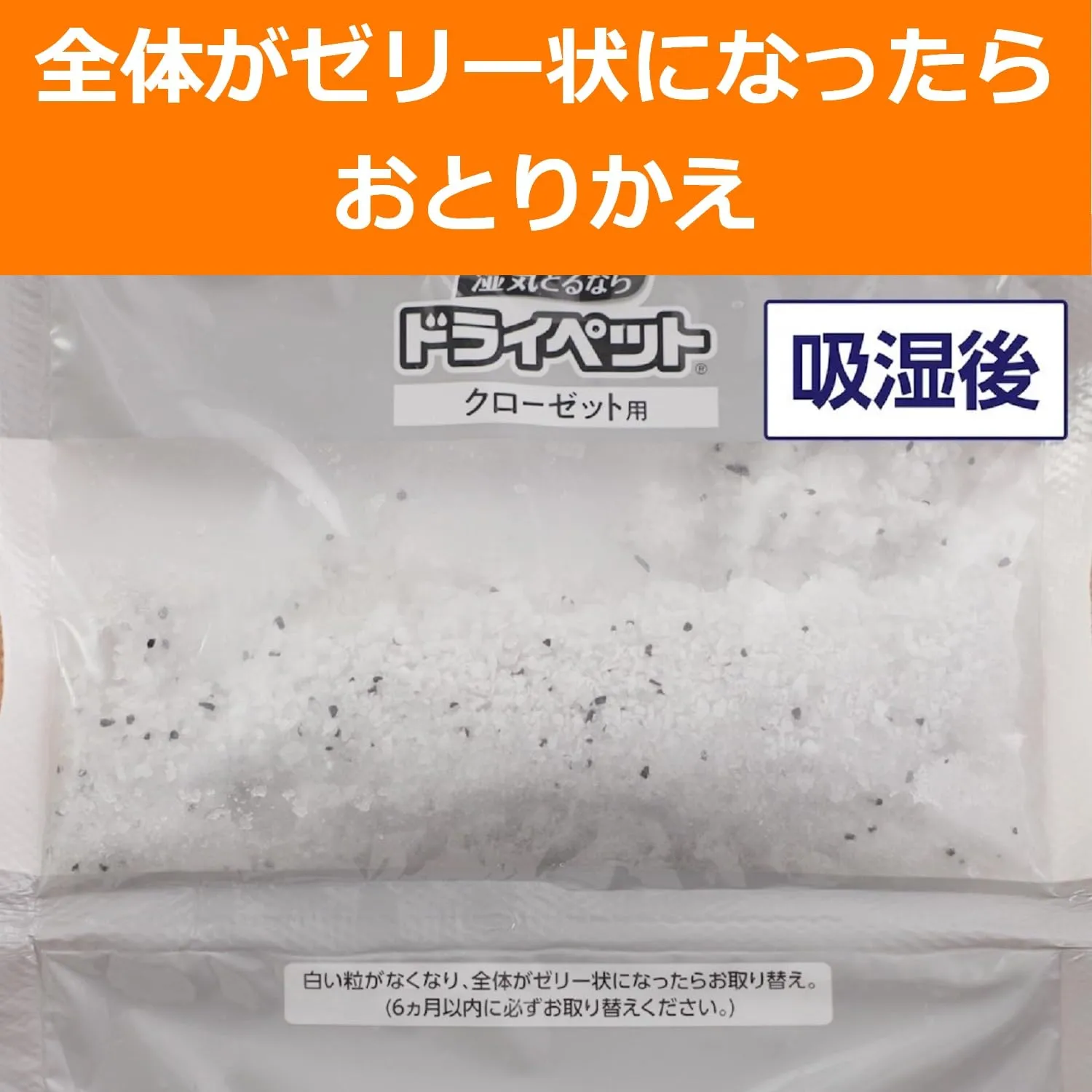 【衣類収納の湿気対策に】薬剤がゼリー状になるので、除湿効果がひとめでわかります。