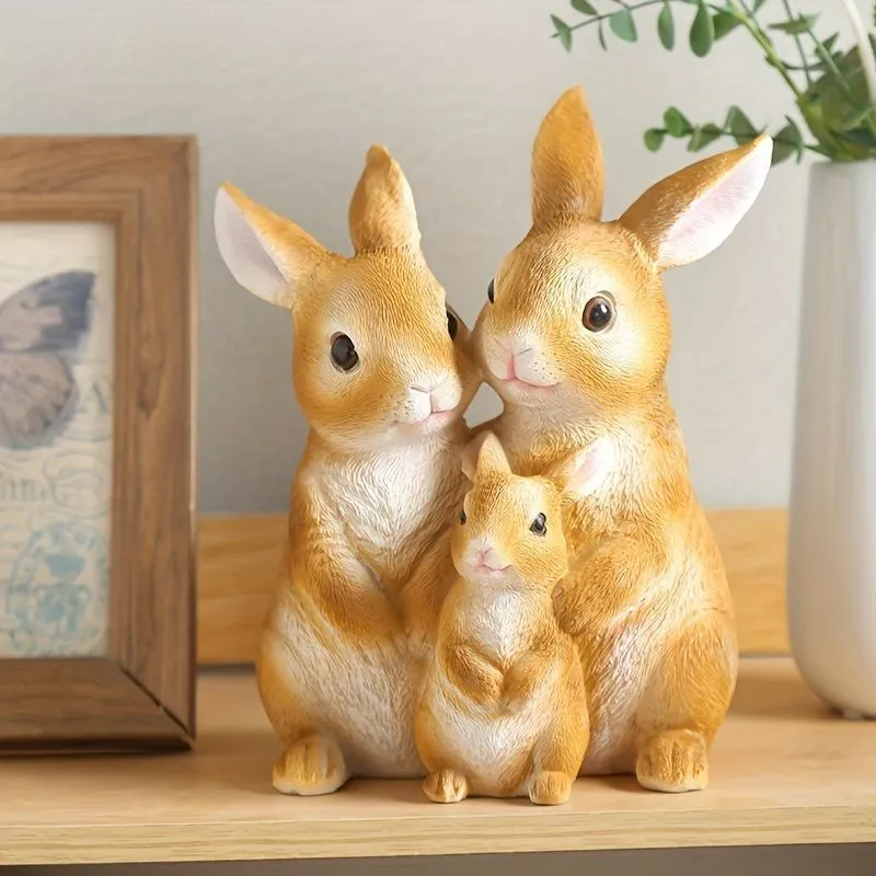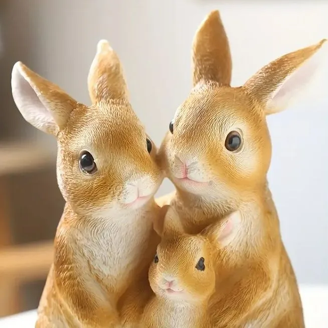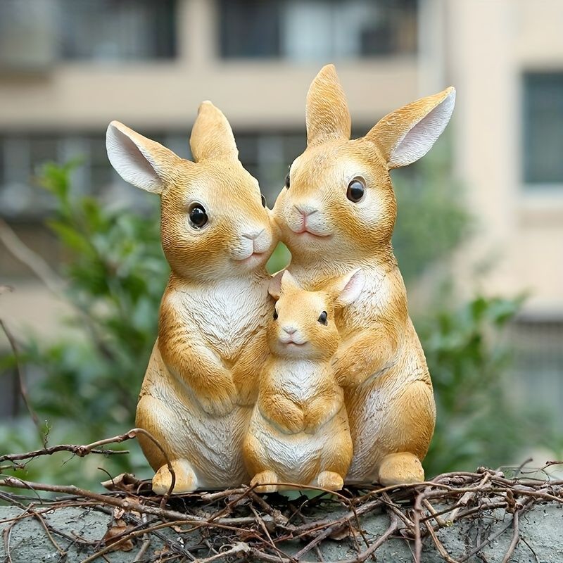 置物 オブジェ うさぎ ほっこり 幸せな家族ラビット かわいい アニマル リビング 庭 ガーデン 玄関 ポーチ 動物
