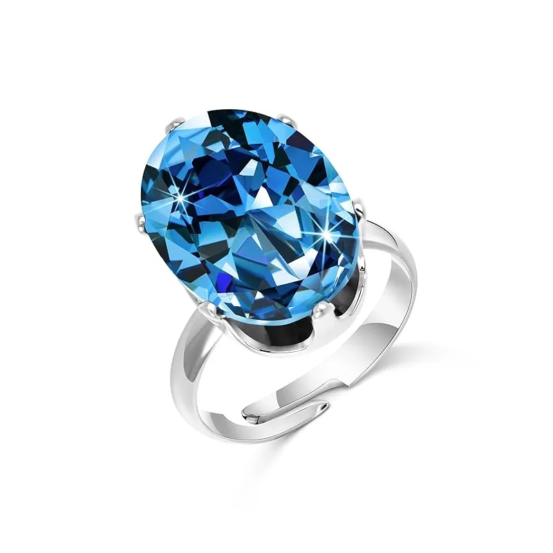 [Linawe] 指輪 フリーサイズ アクアマリン ブルー シルバー リング レディース、プラチナ アクセサリー ジュエリー ゆびわ、モアサナイト 人工ダイヤモンド ジルコニア 3月 誕生石 ファッションリング 1