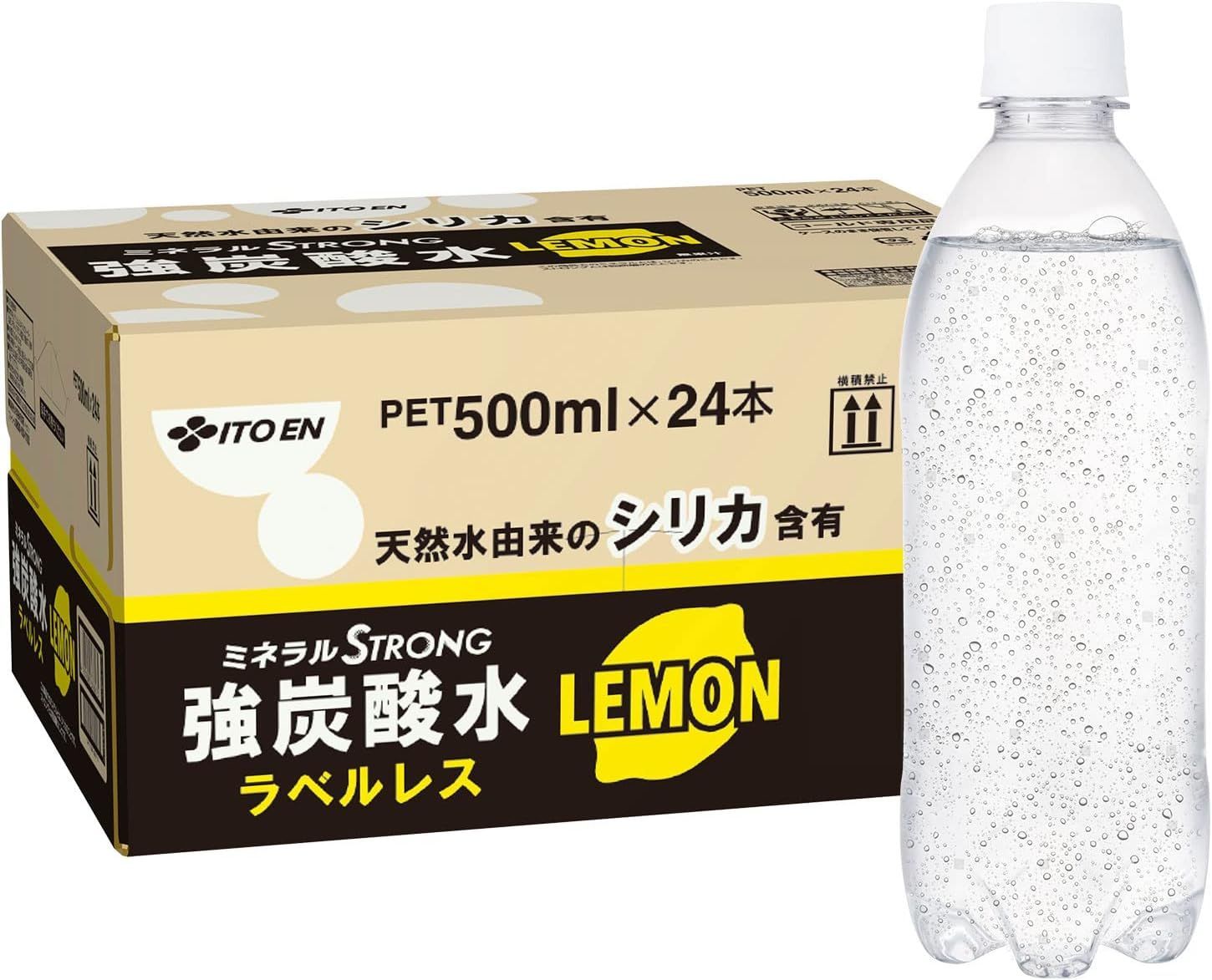 伊藤園ミネラルストロング ラベルレス 強炭酸水 レモン 500ml×24本 4901085636275/△803064