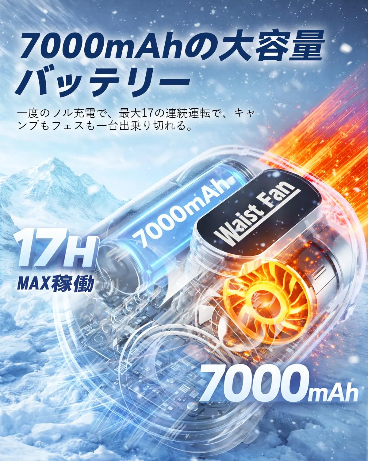 【7000mAh超大容量・屋外作業も一日中涼しく快適】7000mAhの大容量バッテリーを備えた腰掛けファンで、一度のフル充電時間は約3-4時間で、大約17時間連続使用が可能。炎天下で長時間の屋外作業など、電源のない環境でも充電切れの心配はありません。作業効率up!夏さで手が止まらない、腰に装着するだけで、作業に集中できます。ご注意:製品を受け取ったら、初めて使用する前に腰掛けファンを完全に充電してください。