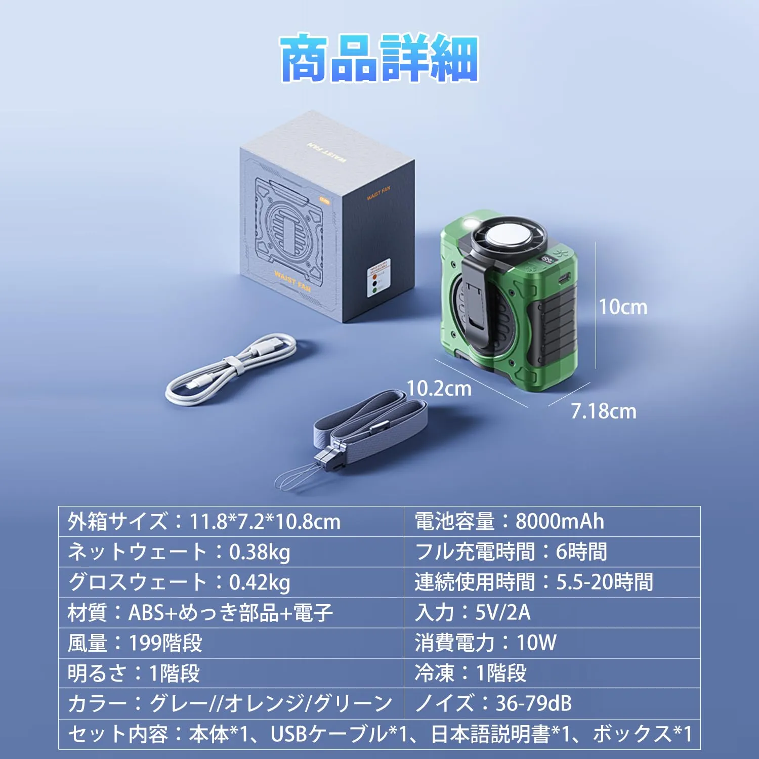 【在庫処分】携帯扇風機 風量199段階 ペルチェ式 ハンディファン ウエストファン 冷却プレート付き usb充電 8000mAh 冷感扇風機 長時間稼働 アウトドア MACOLAUDER 強力 小型