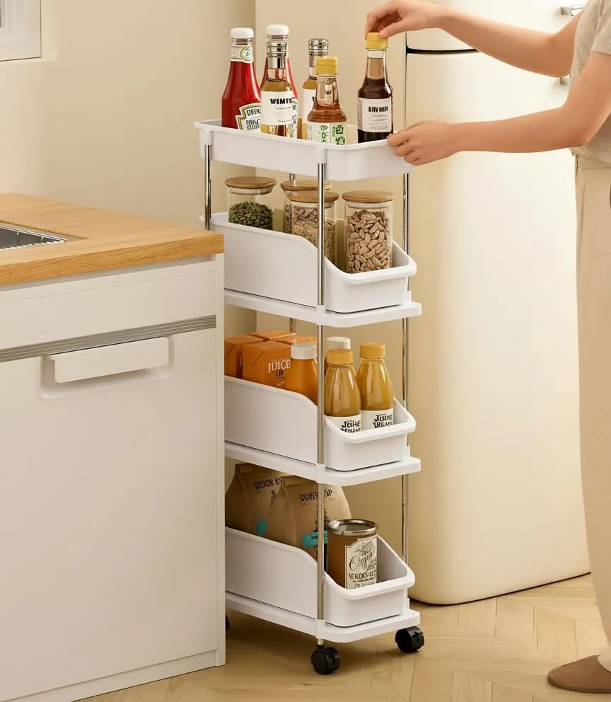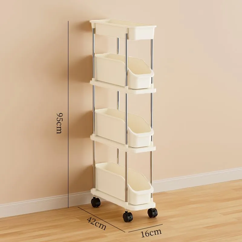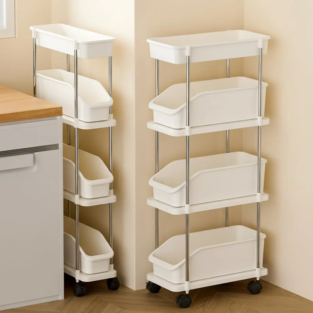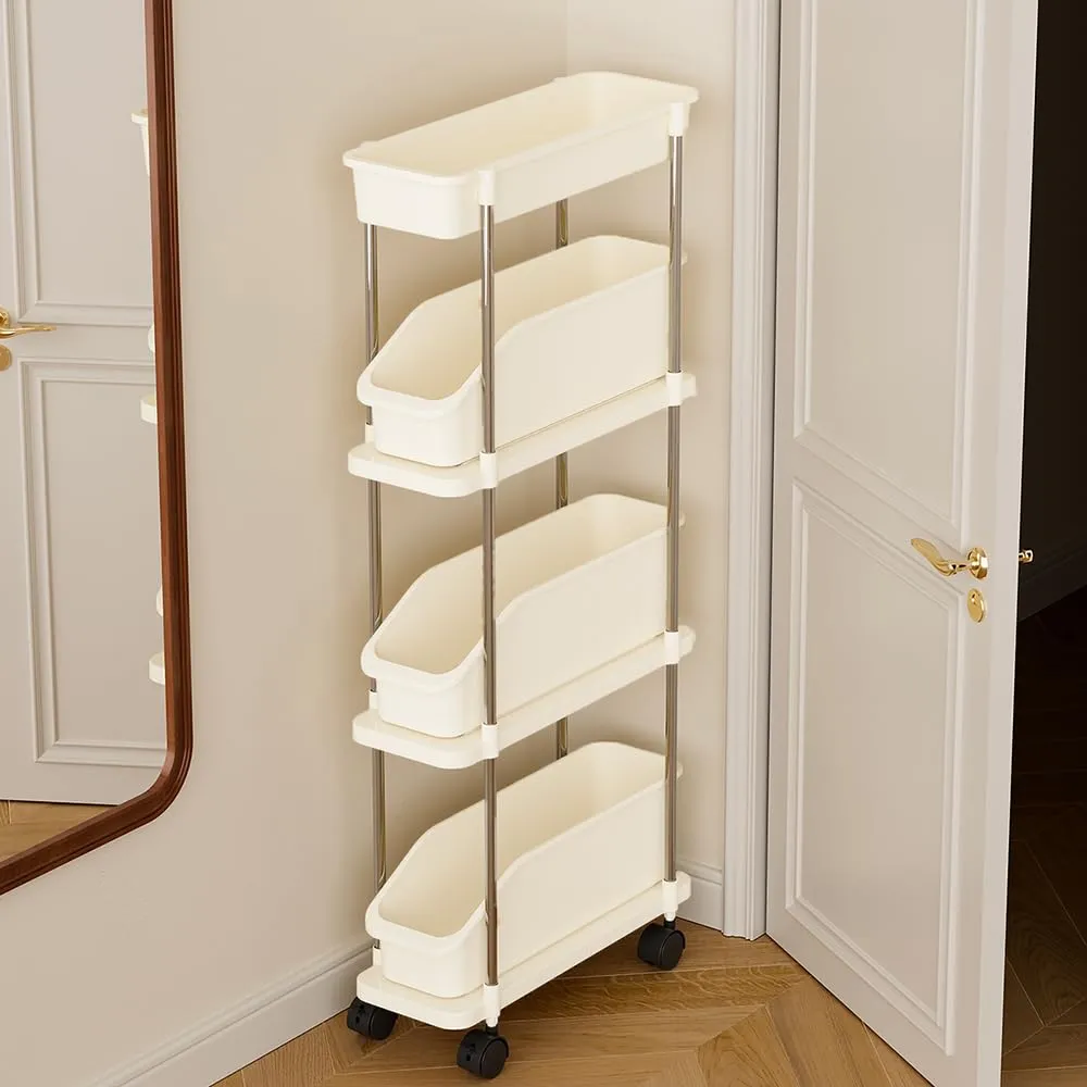 【在庫セール】洗面所 収納棚 収納ワゴン 収納カート スリム トイレ収納 調味料 キッチンラック 小物 キャスター付き 台所 隙間収納 冷蔵庫横 引き出し 移動式 多機能 4段 軽量 キッチンワゴン オープンシェルフ Ismerely 組立簡単