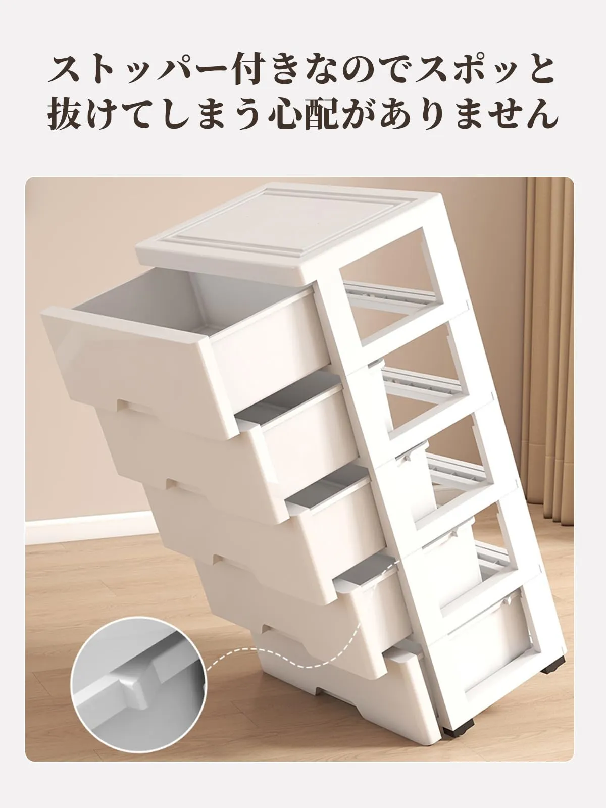 【頑丈で安全】転倒防止構造を採用しており、ご家庭での使用(特に子供がいる家庭)に安心感を提供します。しっかりとした構造によりグラつきが少なく、長期間使用しても安定性を維持し、洋服収納ケースとしての実用性をしっかり発揮します。