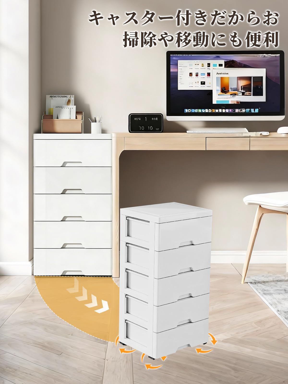 チェスト タンス 5段 白 衣装ケース 服 キャスター付き スリム 収納ボックス 引き出し 隙間収納 棚 衣類収納ケース 脱衣所 家具 おしゃれ リビング収納 洋服ダンス 収納ケース 転倒防止 整理 ホワイト(幅35×奥行26×高さ70cm)