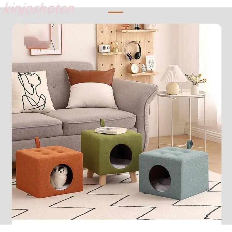 ■オールシーズン使えます毛羽立ちの少ないシェニール織の生地は、春夏秋冬、オールシーズン使える心地よさです。 猫 スツール 猫 ベッド ドーム 猫 ハウス ペット ハウス 犬 ベッド 猫ちぐら キャットハウス ねこ キャット ペットベッド クッション ベット 小型犬 イ