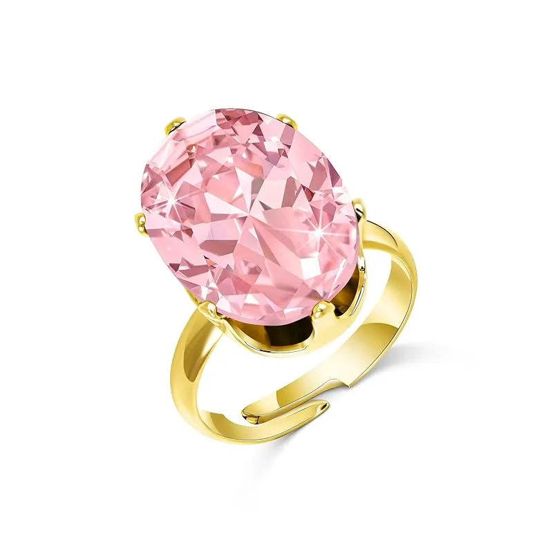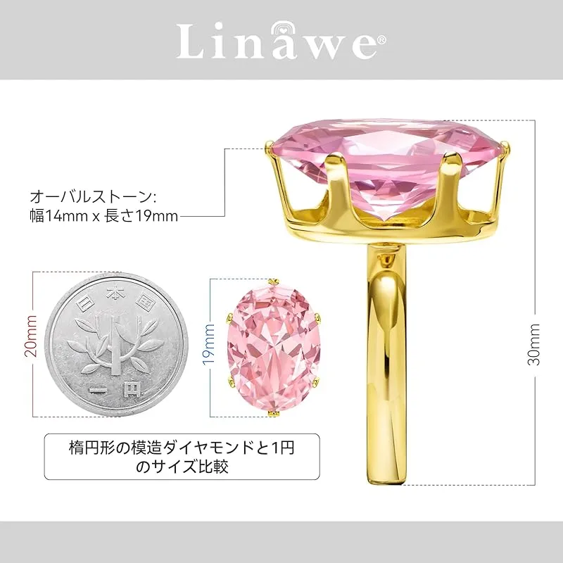 [Linawe] ピンク 指輪 フリーサイズ、18金 リング レディース、モアッサナイト 人工ダイヤモンド ジルコニア 6月 10月 誕生石 指環、ゆびわ ゴールド アクセサリー ジュエリー 0